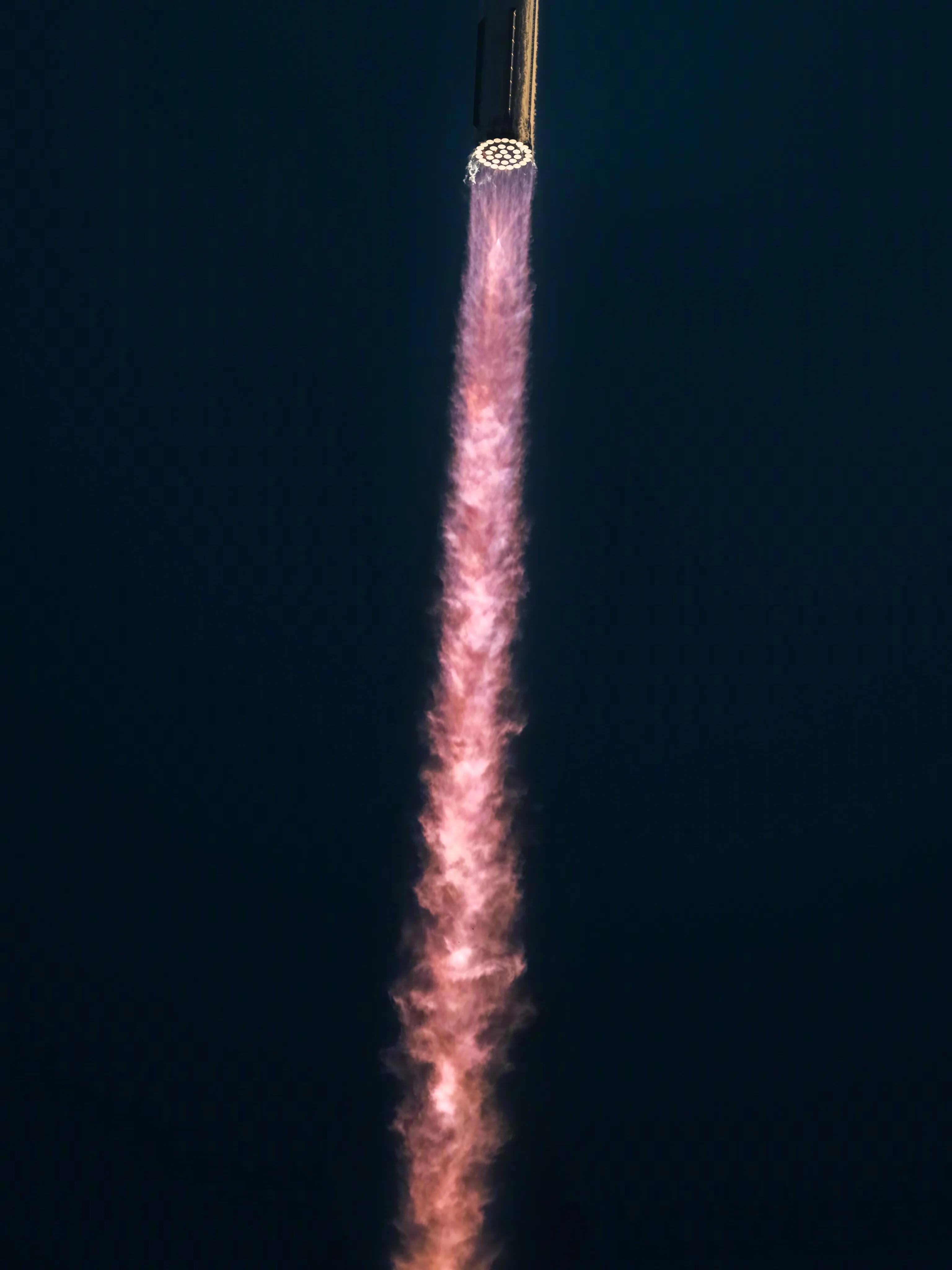这是星舰一级B9的33台猛禽火箭发动机点火,每秒燃烧21.4吨推进剂,以每秒3.2公里的速度喷出的尾焰,正产生7600吨推力,托举着星舰火箭飞上天空。