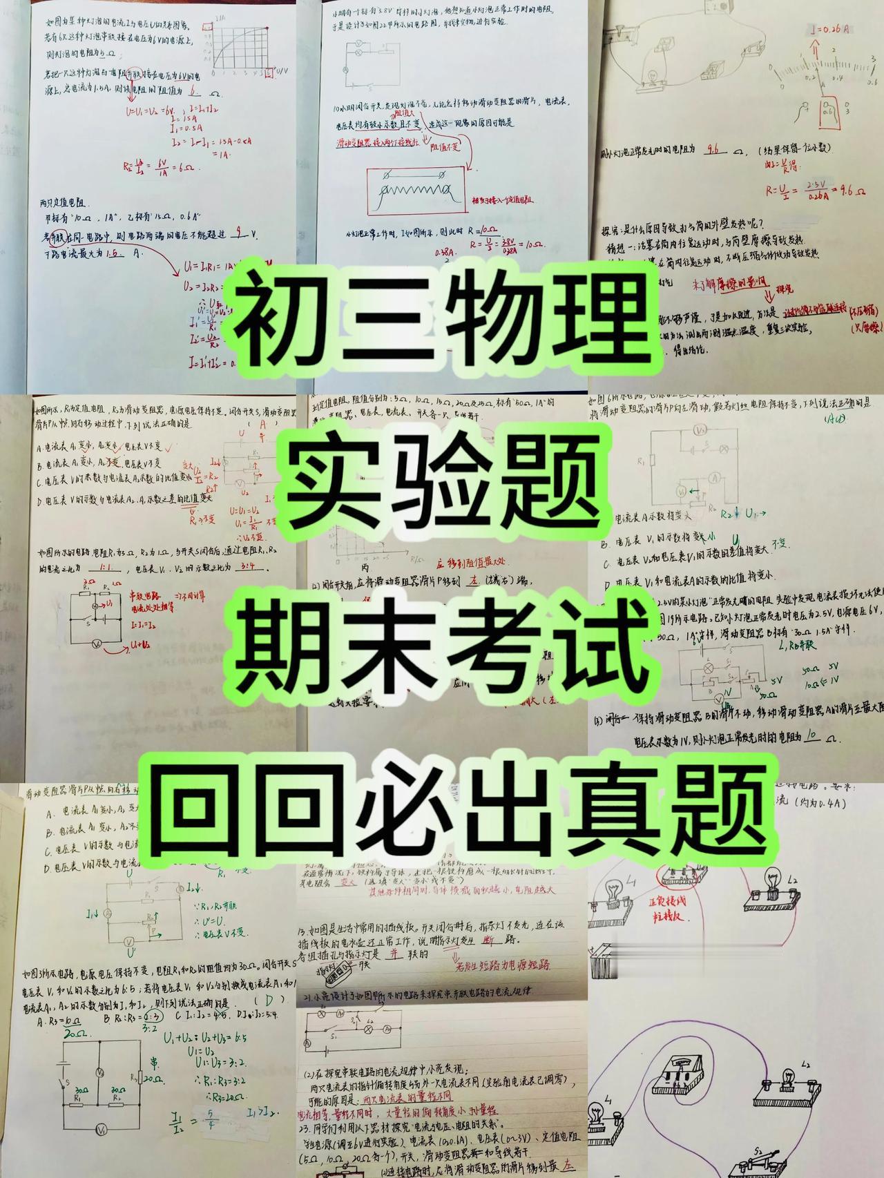 初三物理【实验题】,期末考试,试卷中经常出现的热点考题,这部分内容,都是平时考生最容易出错,马虎,易扣分考题,期末考试前,做完这套笔记,考试中让你稳考好成绩,稳考高分,不再失分哦,赶紧做一遍吧#中考物理# #初中物理# #初中物理九年级# #初三物理#