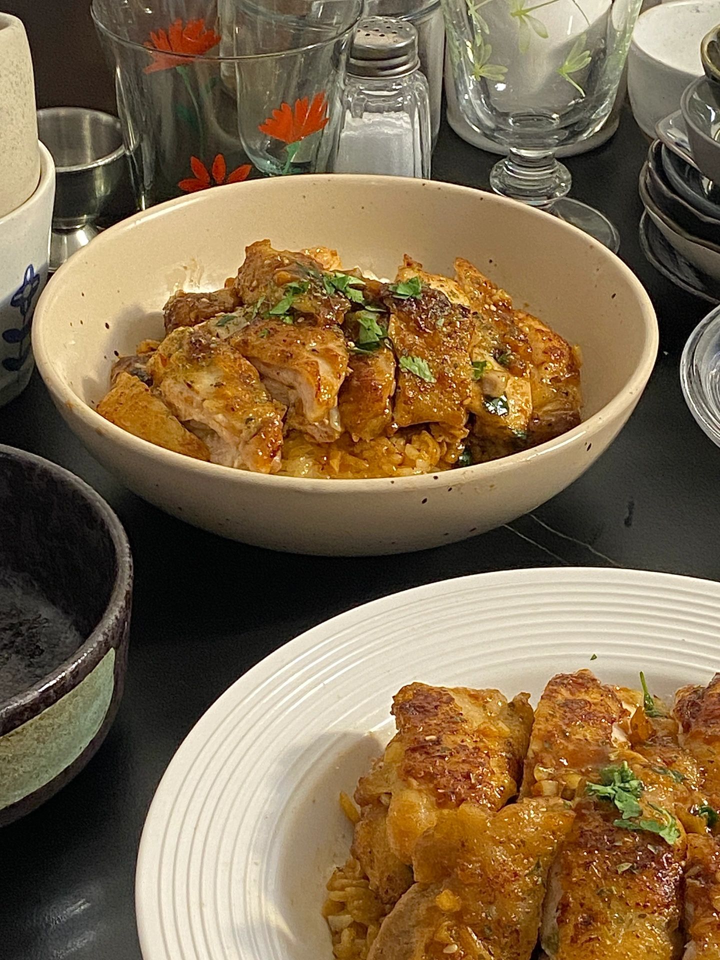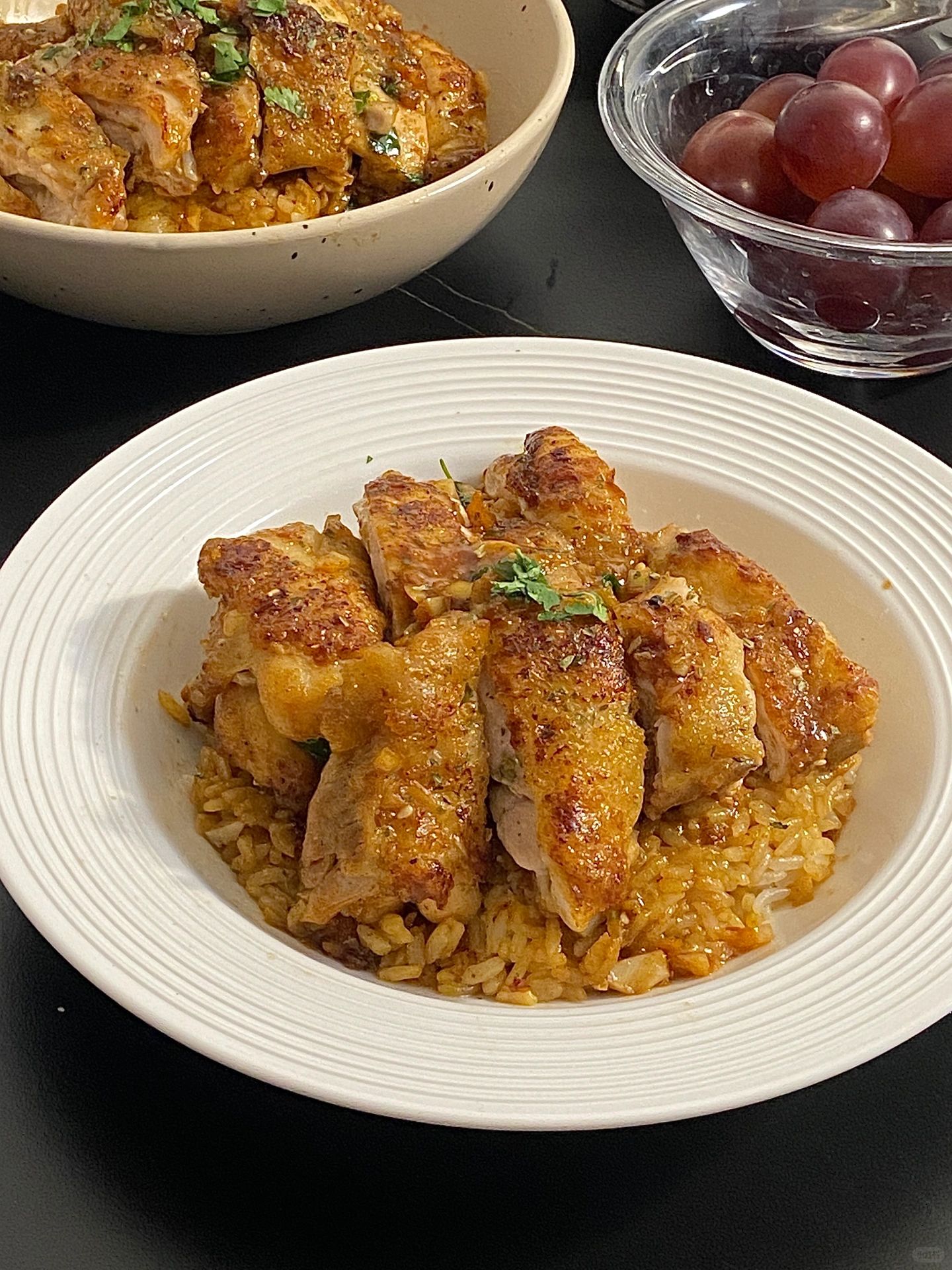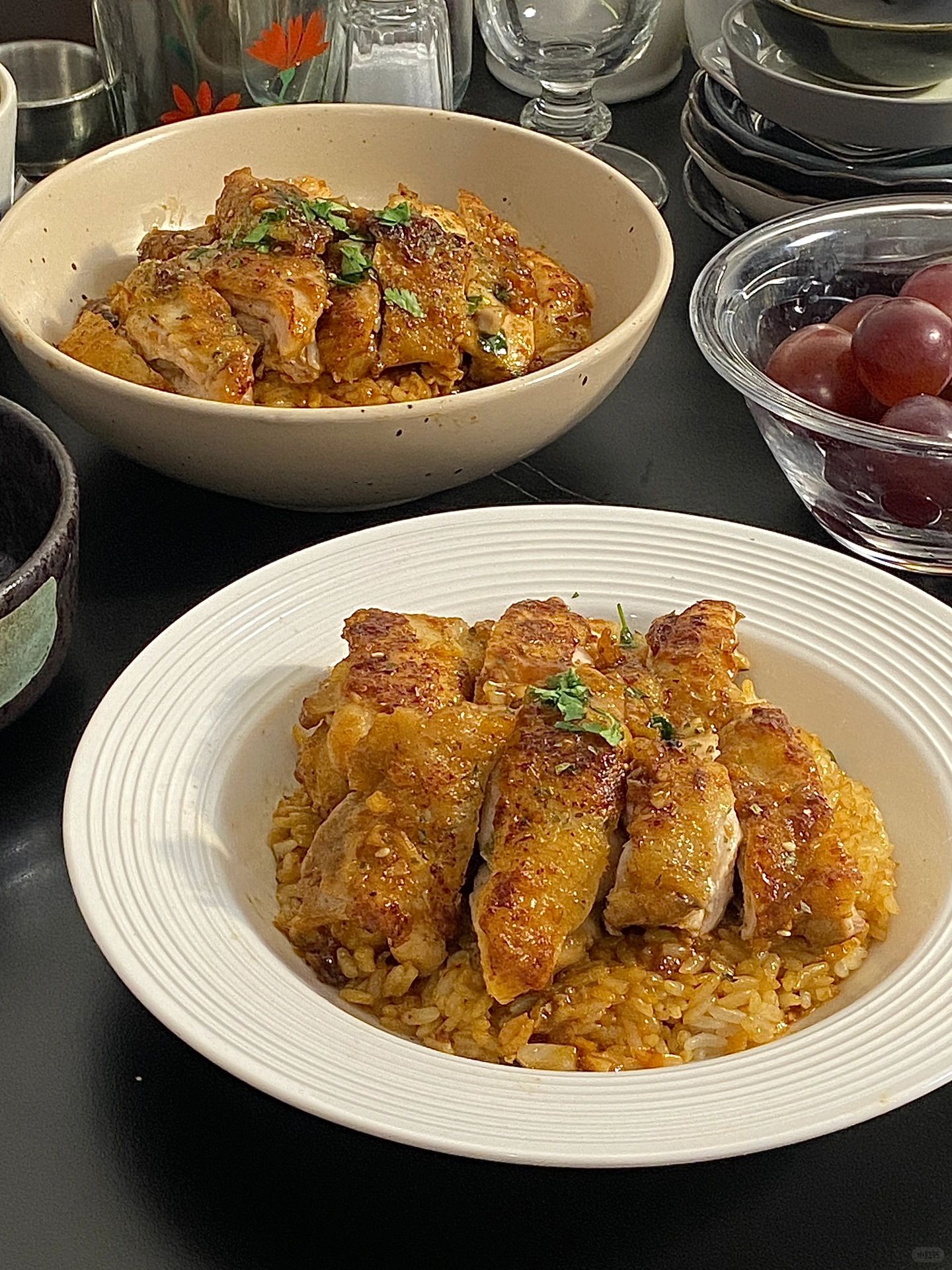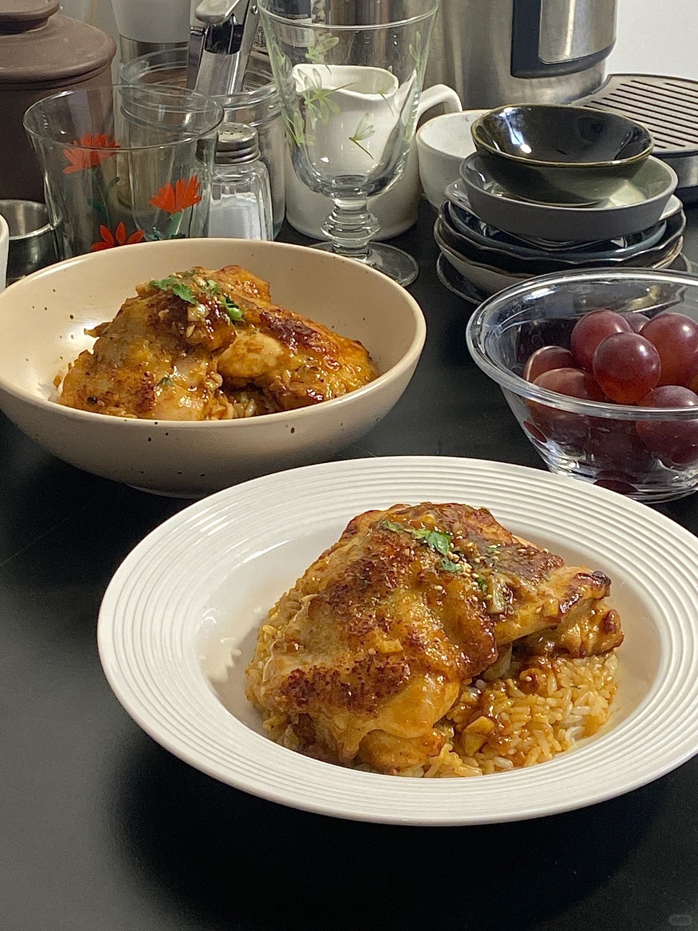 最喜欢这种鸡腿饭的做法,不论是葱油鸡饭、蜂蜜脆皮鸡饭,做起来都是简单又好吃,今天是蜜汁脆皮鸡饭!里面加了辣酱,有一种美式风味口感!
