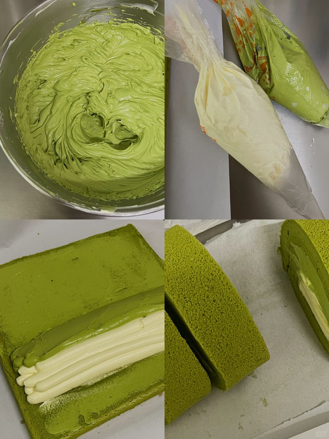 抹茶奶油:6克抹茶粉|20克淡奶油|100克奶油