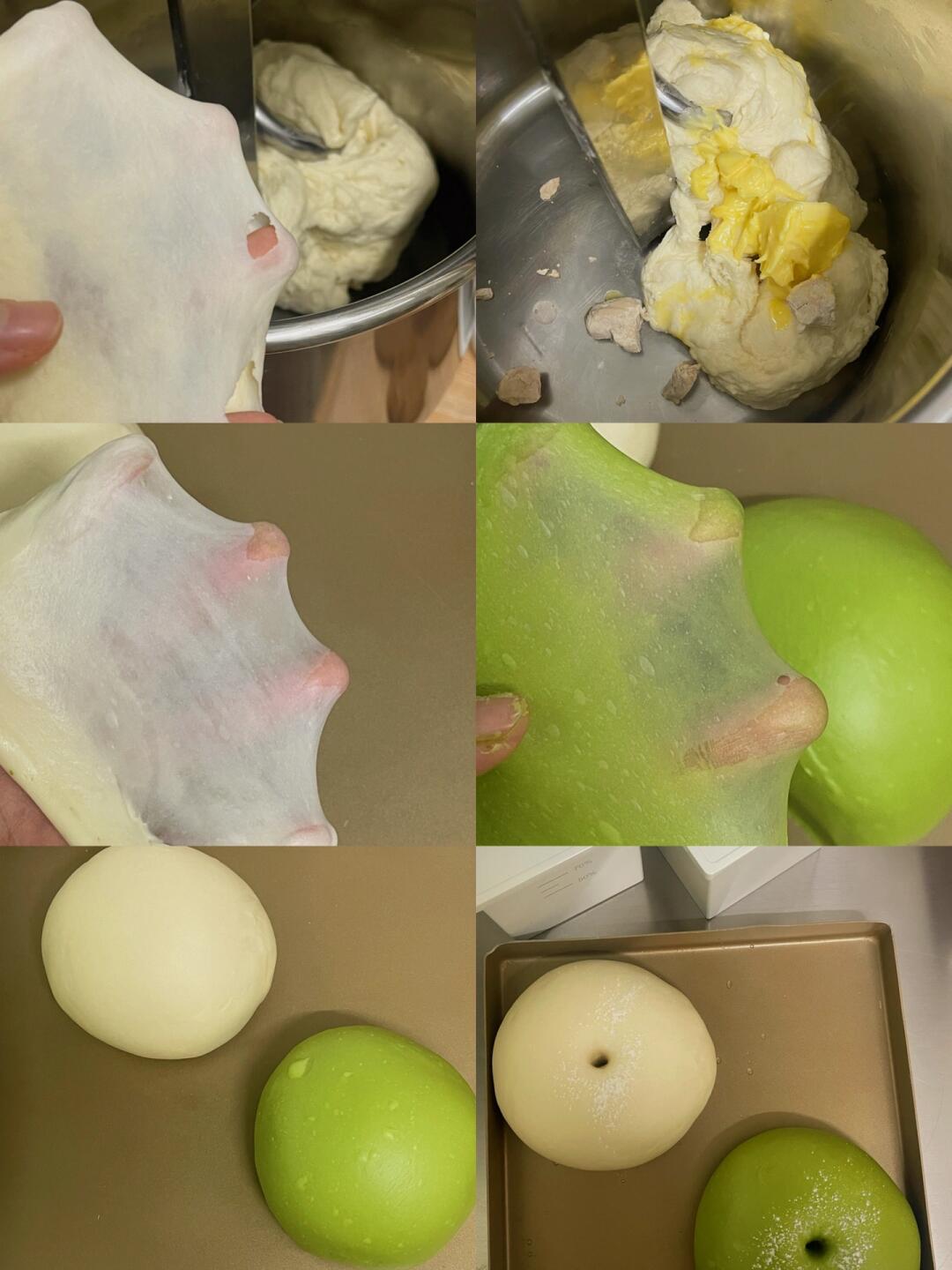 3⃣️取出一半的面团,剩下的加入抹茶揉均匀