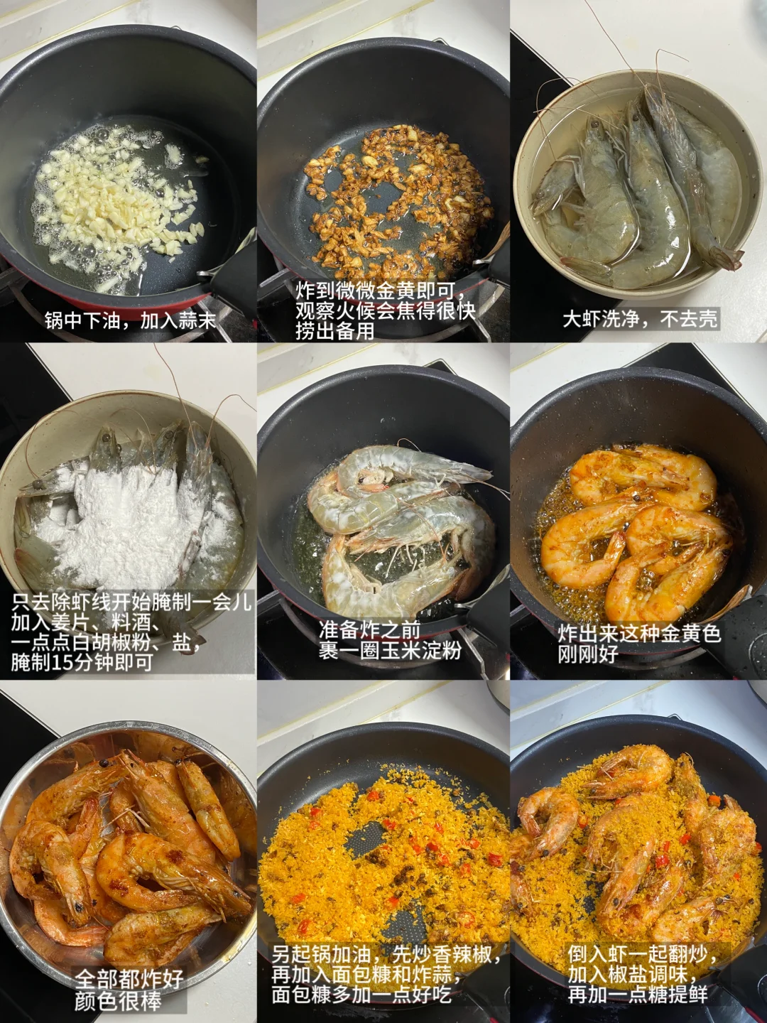 大虾|面包糠|炸蒜|小米辣或者干辣椒|椒盐