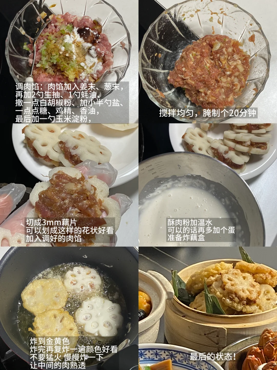 莲藕1段|肉馅200g|葱末|姜末|酥肉粉|调味料
