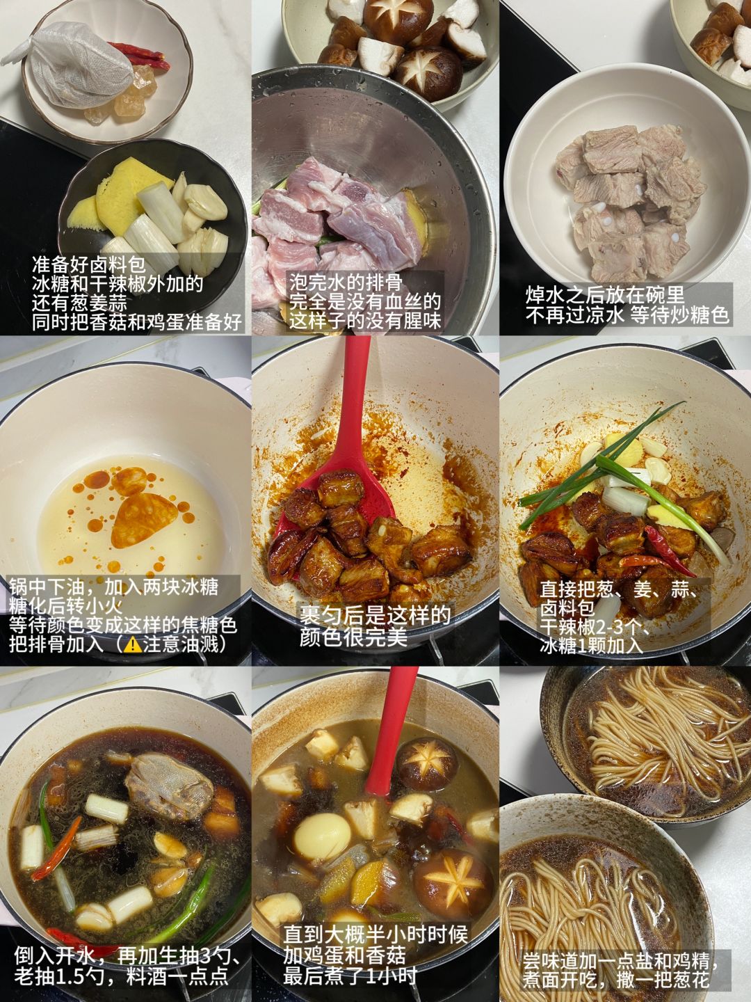 肋排2条|卤料包|干辣椒|冰糖|生抽|老抽|鸡蛋|香菇|小葱