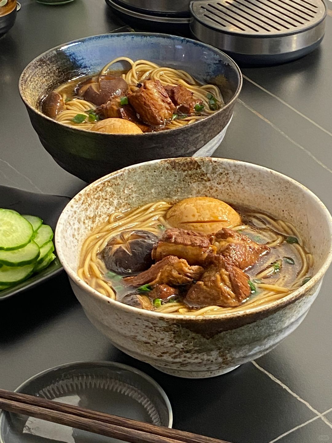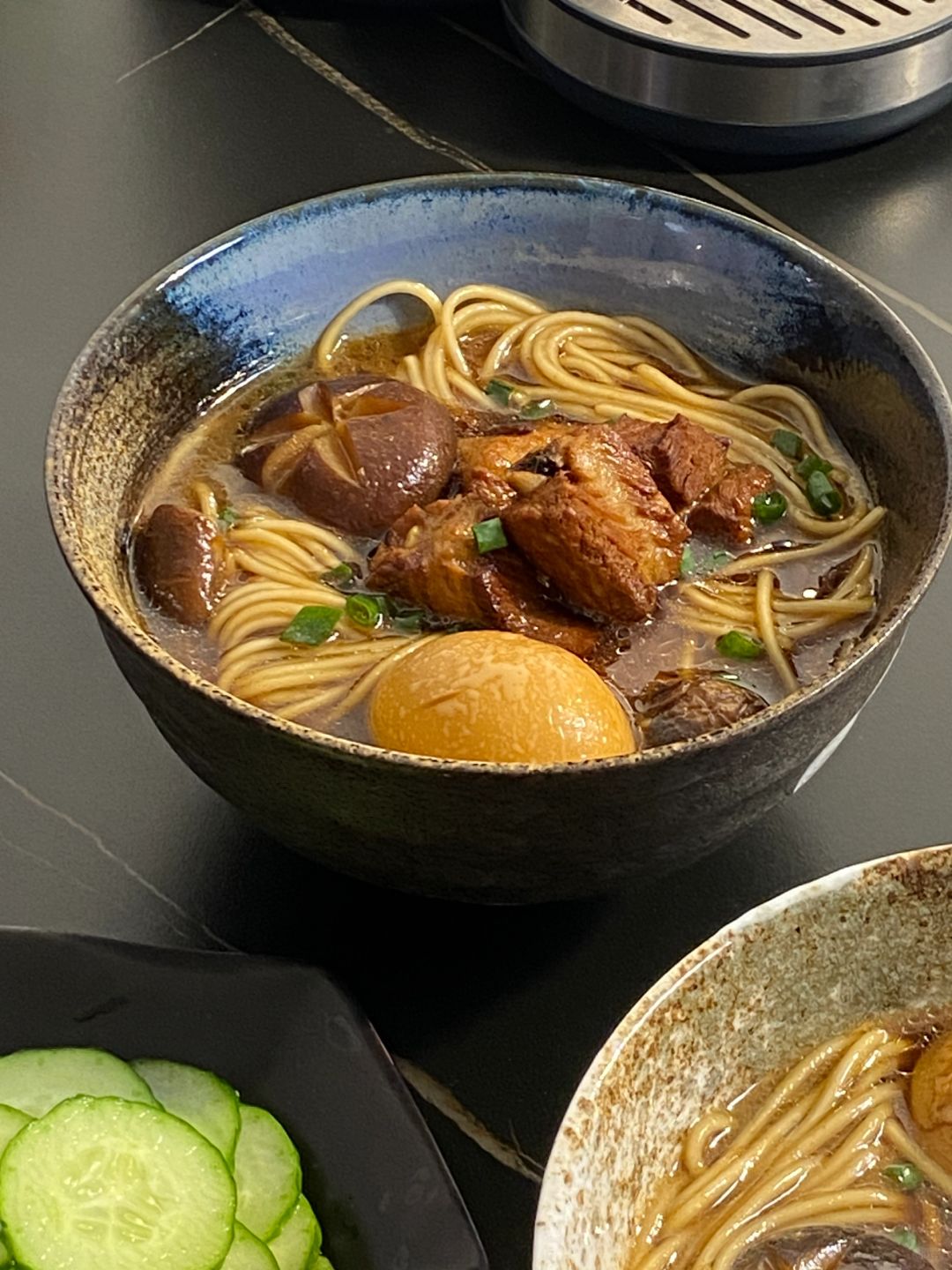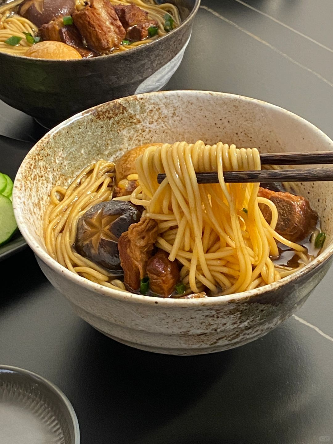 3)汤用来煮面所以加了比较多的水,过程中可以尝味道,适当加入生抽,既不要太咸也不要太淡