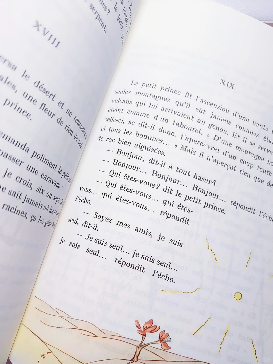 小王子很久之前就读过了,这次读的是中英法三个版本都有,小声说,我在上大学的时候有想学过法语,但是最后因为其他课的忙碌而最终没有坚持下来。这版是套盒装,一本英文,一本中文,一本法文。英文和法文的都很适合初学者,英语单词和句型都很简单易懂,有点英语基础的都可以看的懂