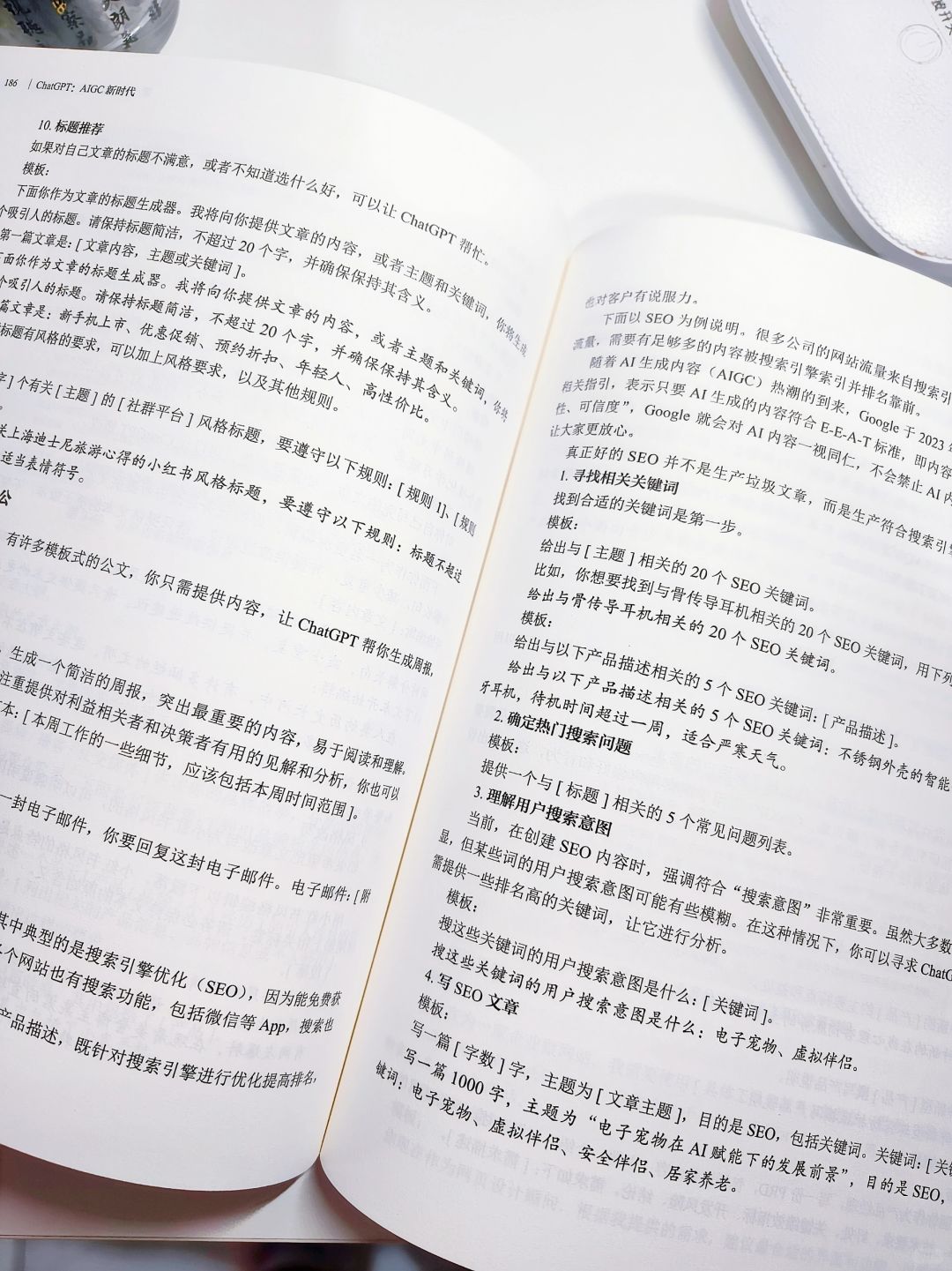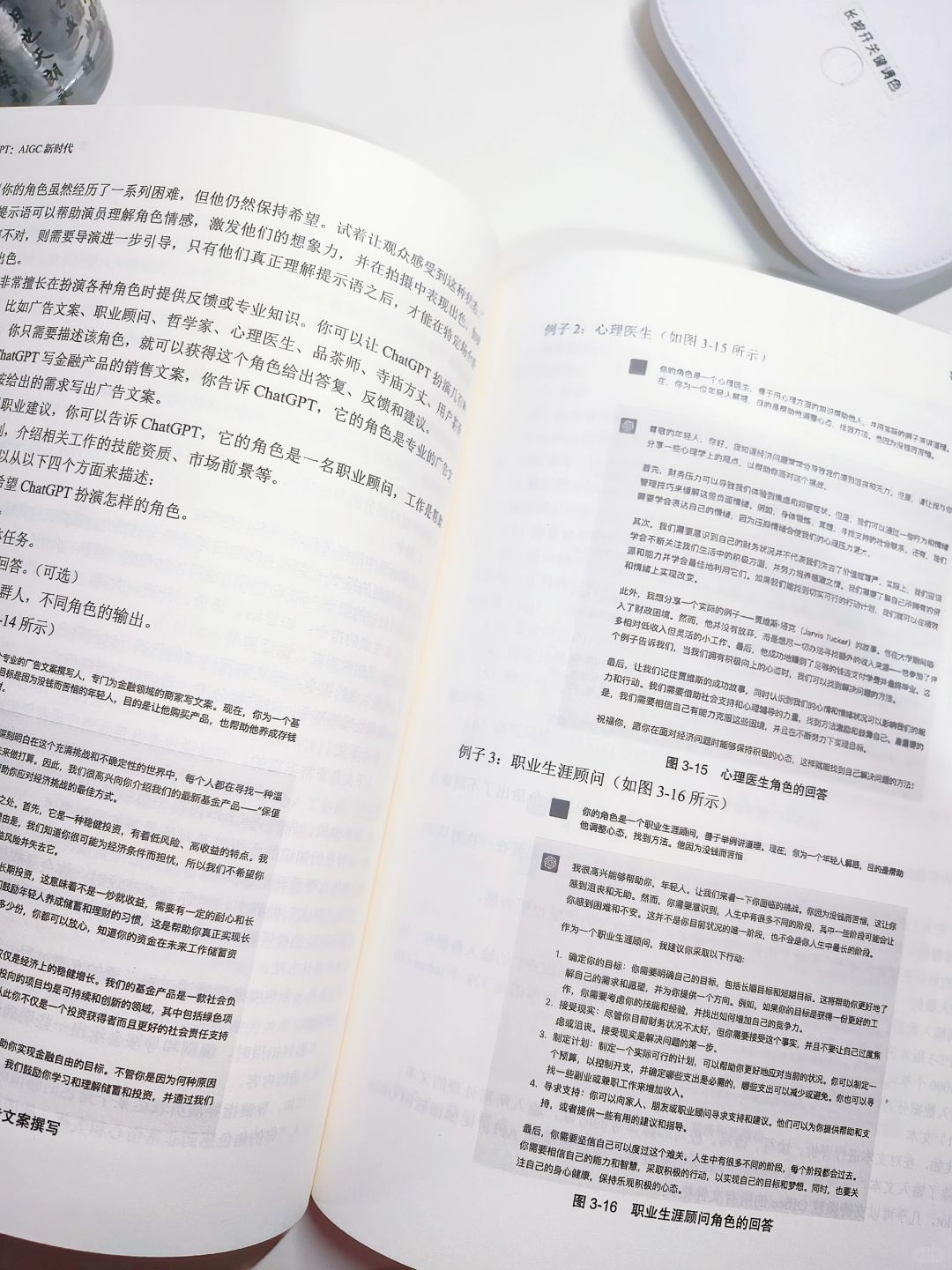 对于我这种文字工作者来说,创意写作是我最喜欢的板块。悄悄说我之前写论文的时候也使用了chat gpt。所以对于写作的时候我们有时候缺乏灵感或者觉得自己的语言不足以把事情叙述清楚的时候,我们就可以输入关键词利用他来润色文字。在书里我还看到了一个我非常喜欢的作用就是“阅读陪伴” 它可以推荐书籍、讨论观点、内容摘要等等我觉得对于读书人或者不知道不自律但还想读书的人是个很好的阅读陪伴。