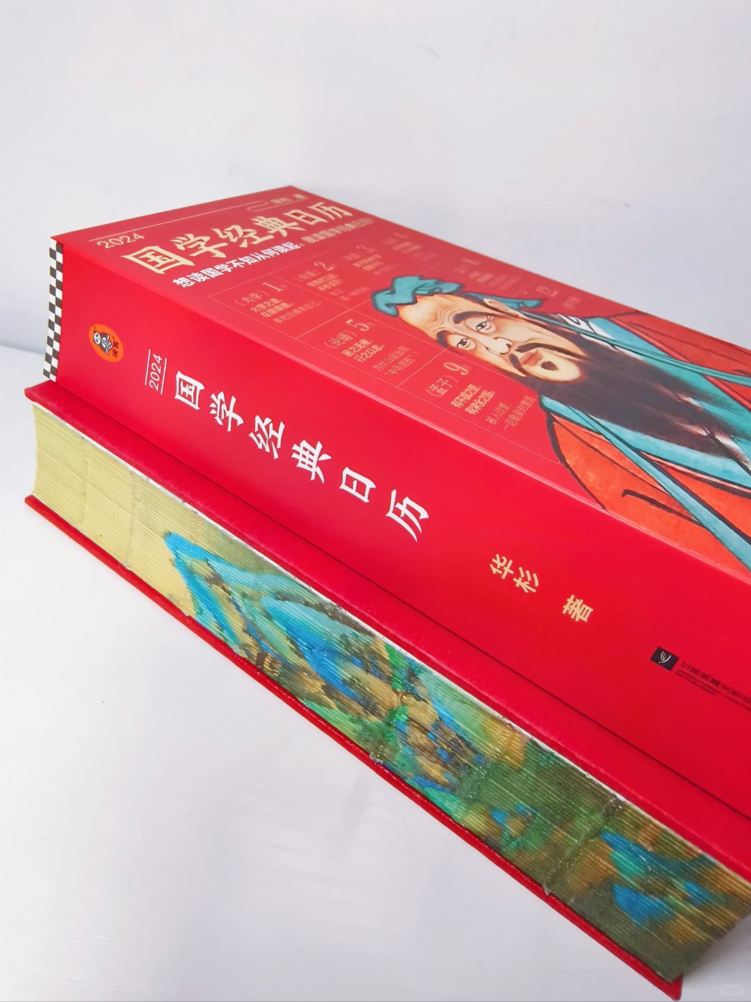 这本日历除了本身富有极高的价值和文化底蕴,在装帧上也是别有一番风味!红色喜庆的外壳,精装书籍彩色喷绘,是线装的设计可以180°平摊,翻阅起来很方便。拿在手中也很有质感!