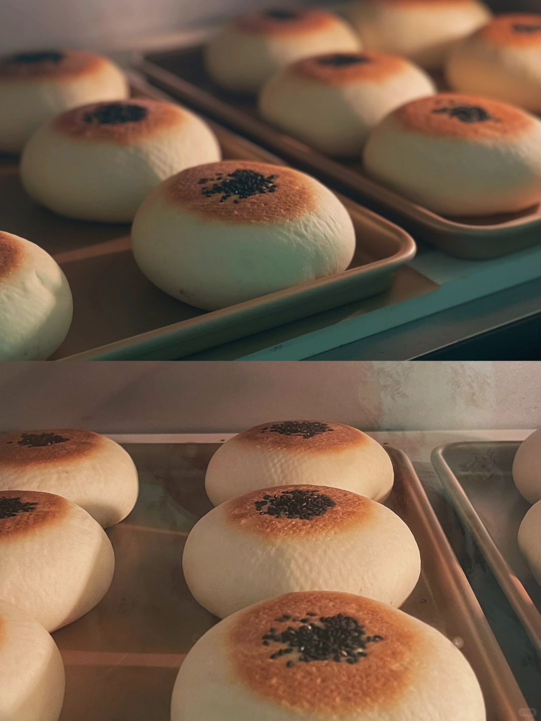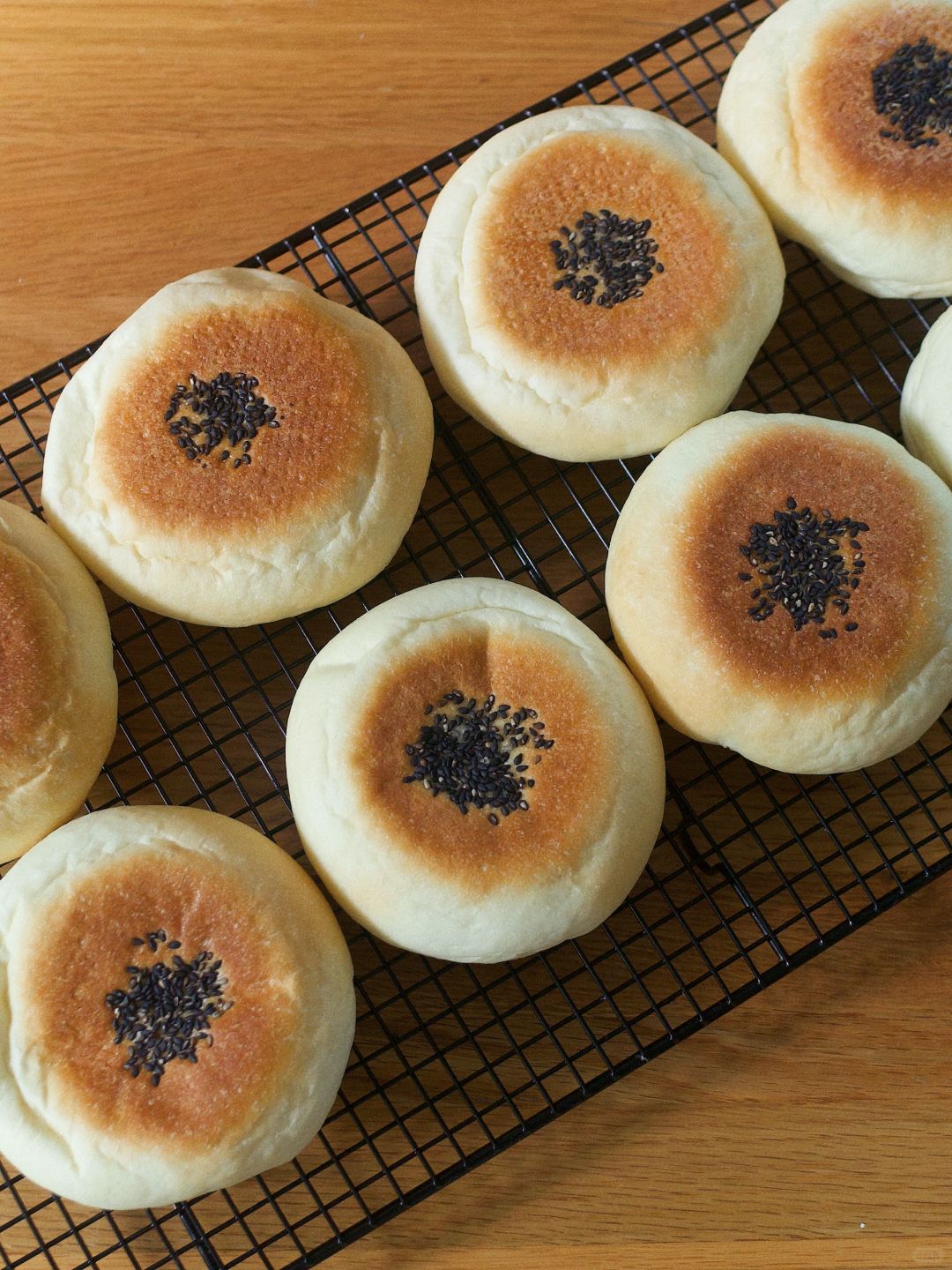 面包表面粘上黑芝麻,上面放一层烘焙纸