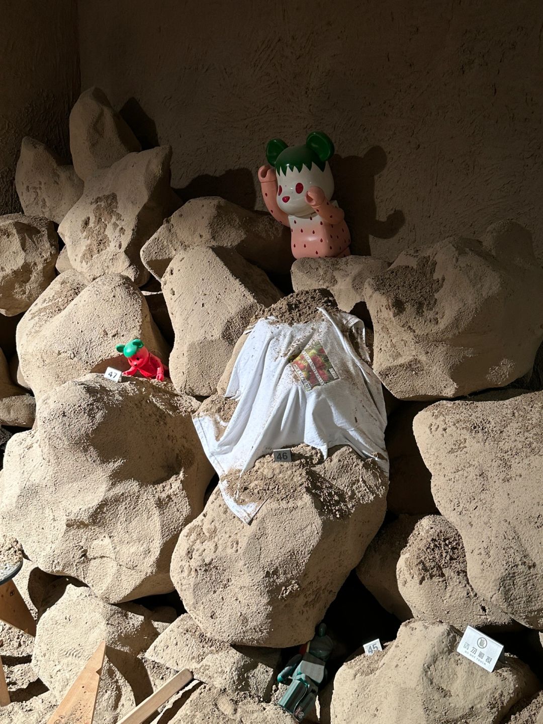 大多展出都是陈冠希本人自己的藏品以“五行”为主题划分了金 ⚜️木 🪵水 🌊火 🔥土 ⛰️五个展厅 说说我最喜欢的两个厅 1.“土”整个主题模仿未来的考古现场 散落各处的21世纪的“潮流玩具” 以未来的角度去观察现在的流行文化我觉得是特别有意思的一件事 2.“火”整个展厅以红色为主基调 代表浓烈的欲望 原始的动力 从古至今的钱币🪙是世界动力 不断播放的海报💃是欲望之火 衣服和作品🧥是思想之火 主理人陈冠希通过连贯三种不同角度的火元素载体 构成其立体的艺术表达 其他 金厅主题是“宝藏”💰木厅是“支撑和框架”🪵水厅是“无形与流动”☯️ 个人认为土和火也是最出片的 以上纯个人解读 有兴趣的姐妹可以作为参考去现场感受 毕竟谁不遇见陈冠希呢?!!???