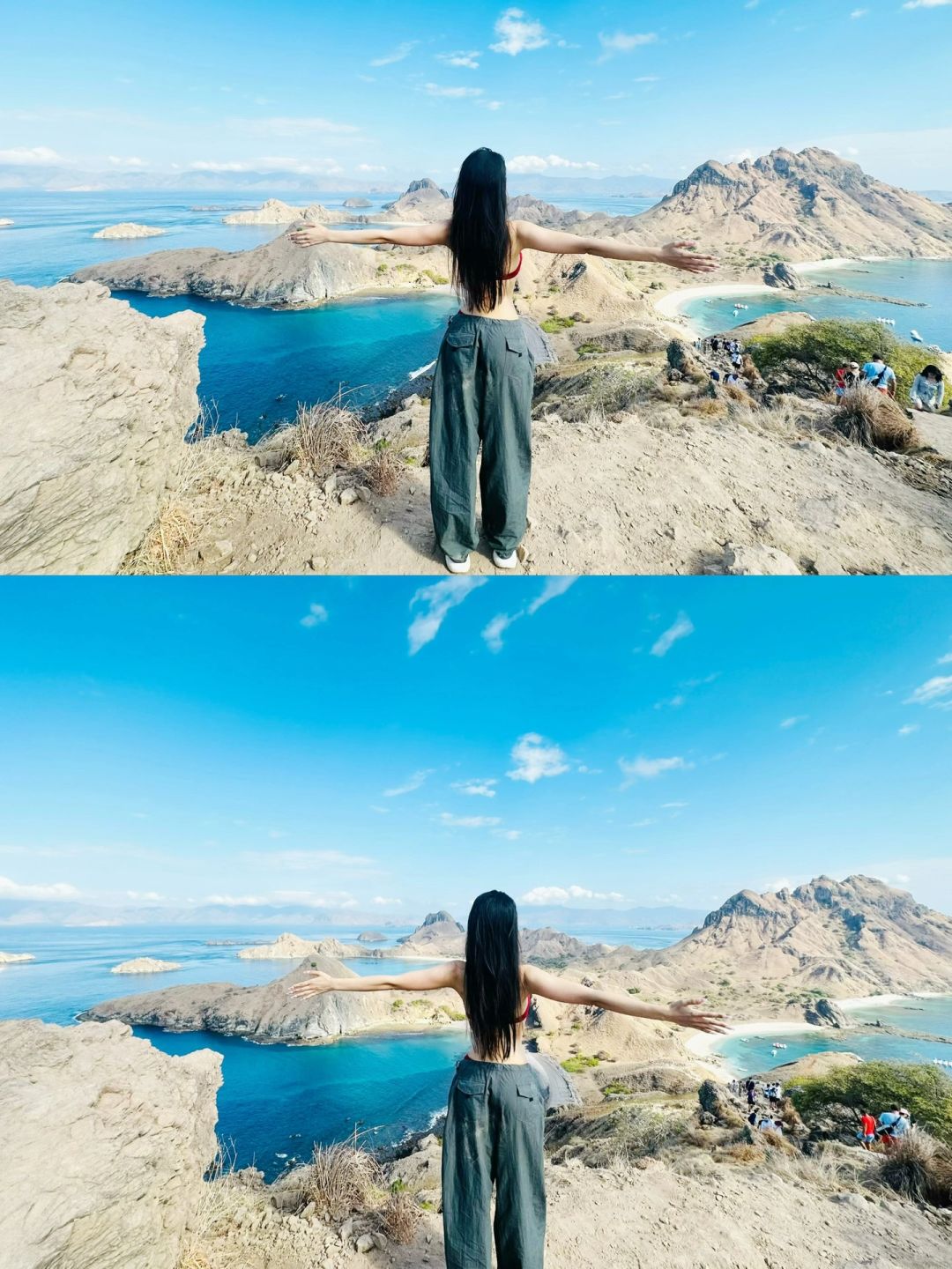乘快艇出海 🚢到了景点停泊 开启自由攀爬时间⛰️ 一共有三处歇脚点 每到一处就可以多看到一个湾👁️ 登顶和三湾合照 好美 旅行的意义在于当你的内心停滞不前的时候 可以放松心情但还在路上💕🆙
