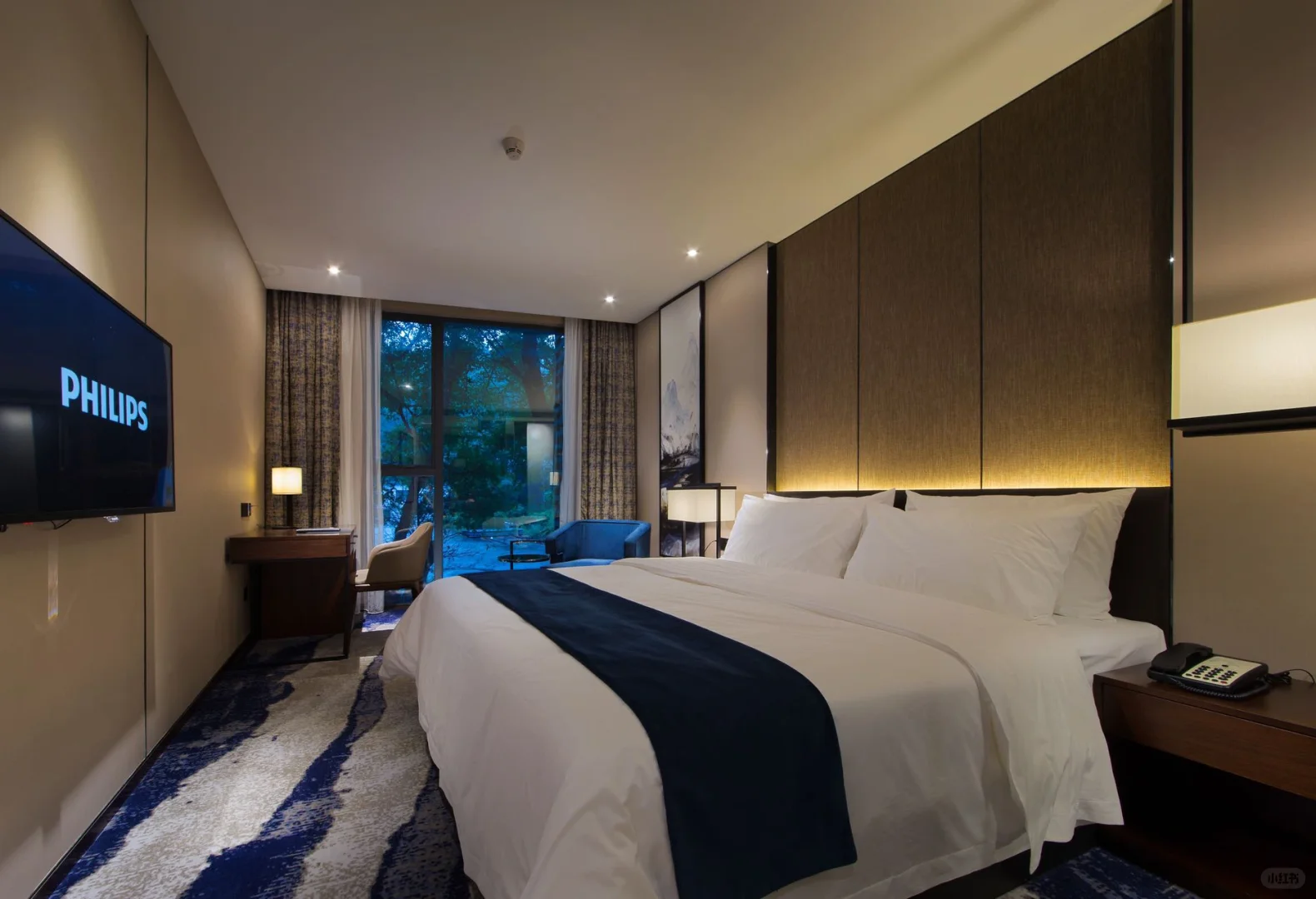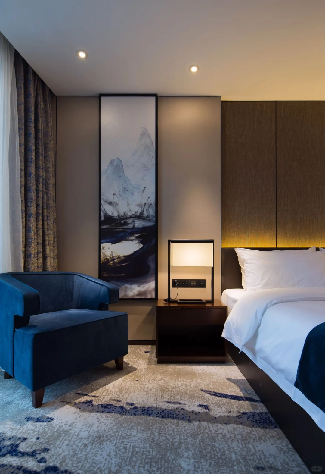 我预订的轻奢大床房,房间面积还算挺大,装修很有质感,有沙发和办公桌,还挺适合我这种白天逛景点,晚上要处理💻工作的。