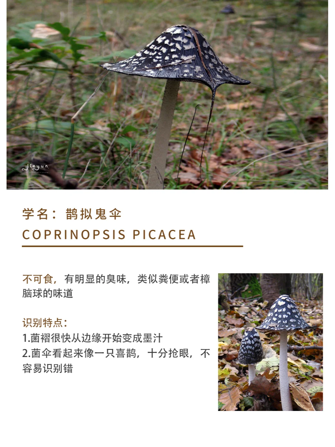 2.菌伞看起来像一只喜鹊,十分抢眼,不容易识别错