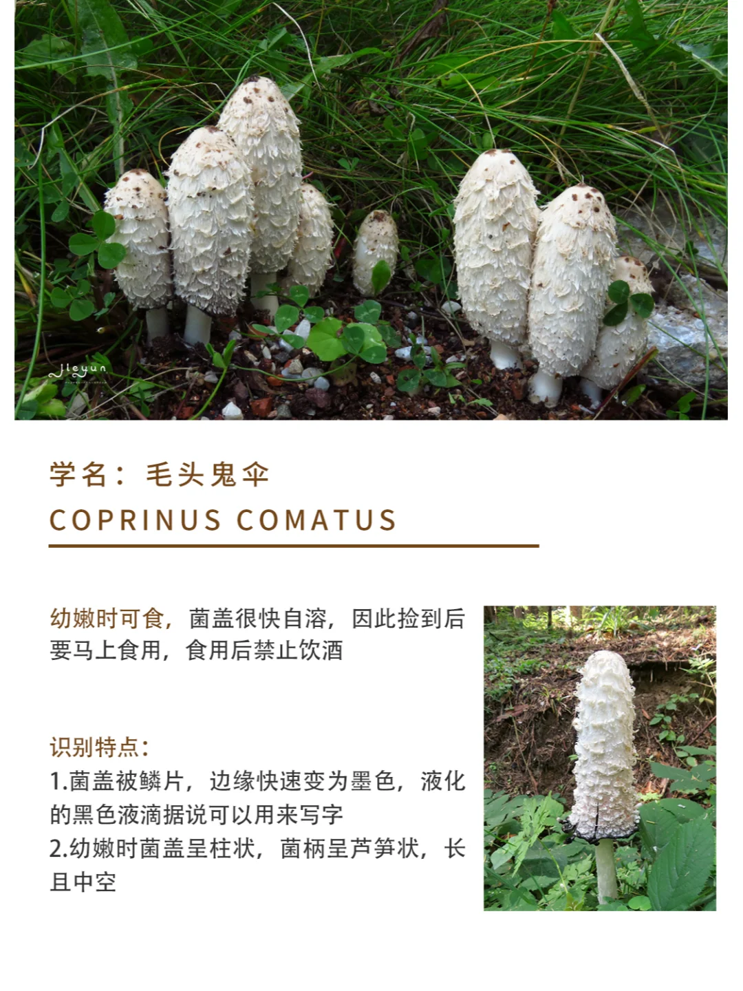 毛头鬼伞有些地方叫马屎菌,未开伞时可食,味道很鲜美,开伞后即变黑有毒