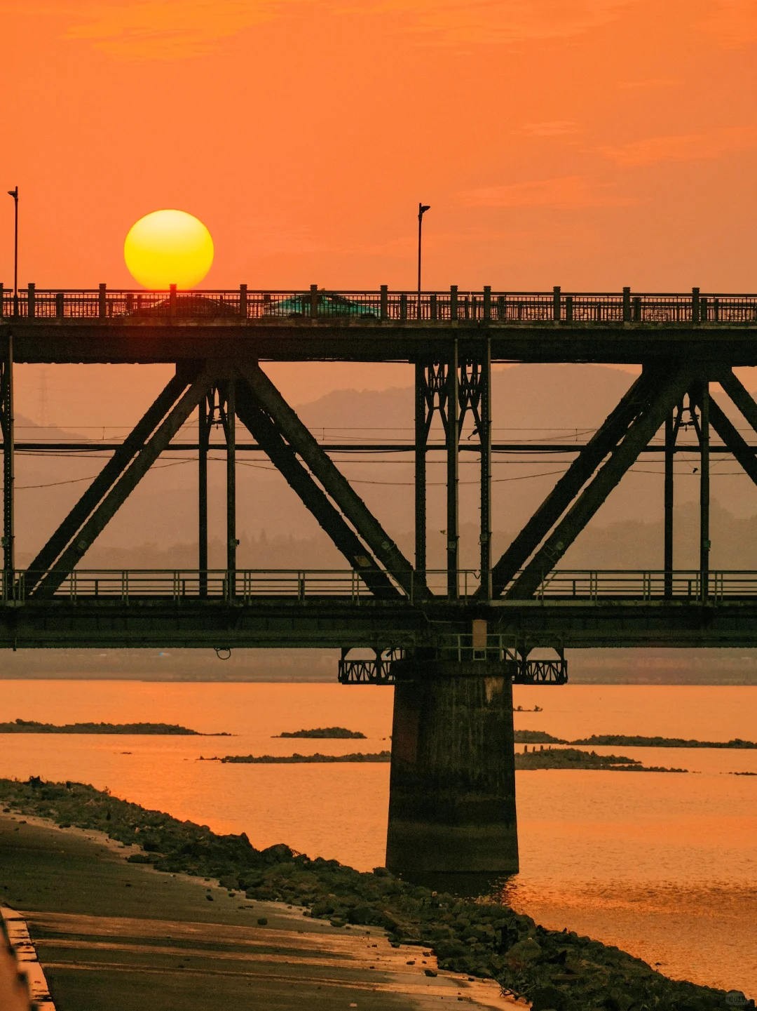 📍钱塘江大桥✔️打卡落日飞车🌄晚霞火车zui佳观赏地「闻涛路一桥公园」