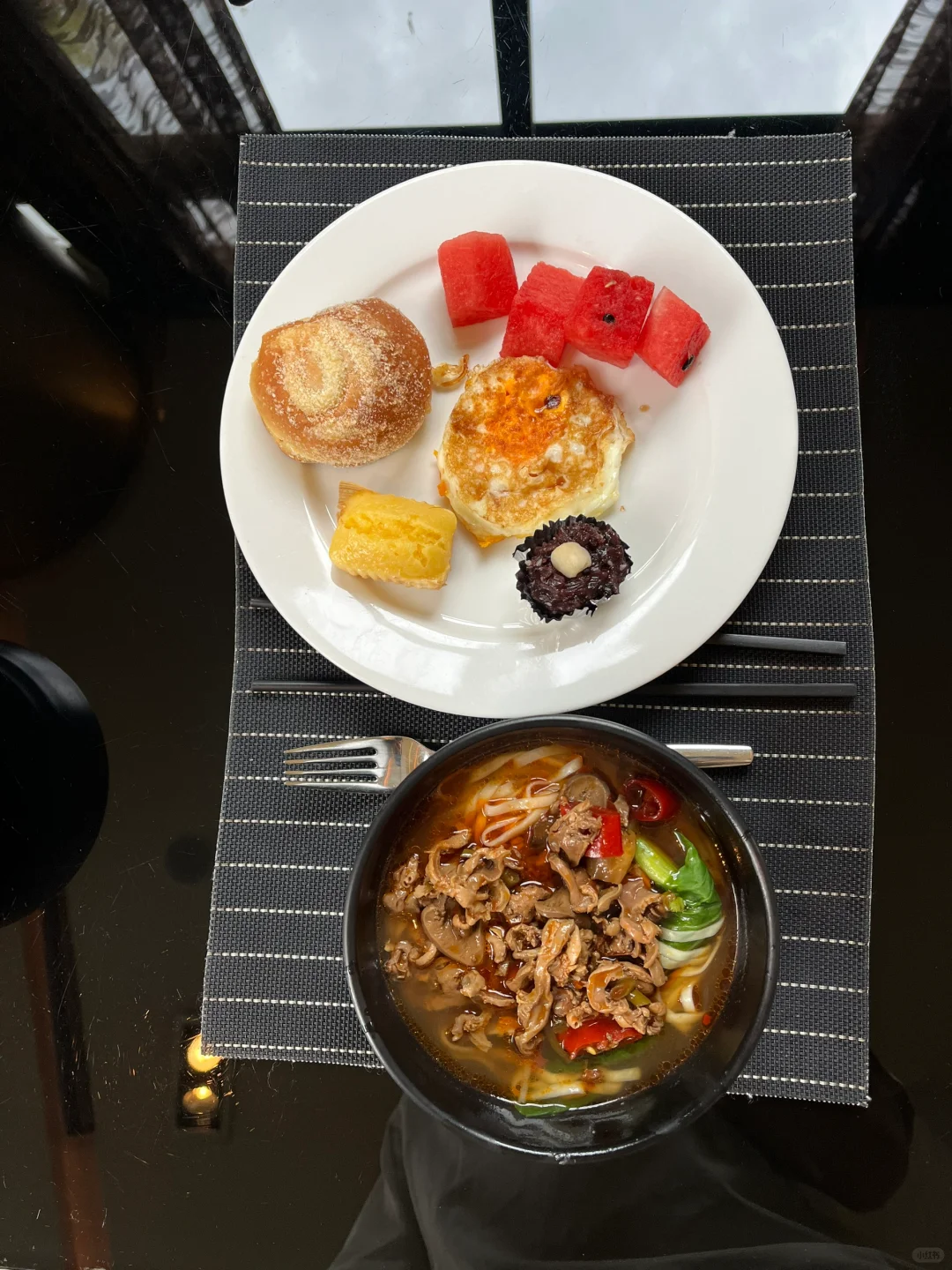 尤其要吐槽的是停车场,作为一个星级酒店,停车场是借用的住宅小区的,整体有点脏乱,第一印象真的很糟糕,还要和门卫叔叔说一下,是住酒店的才放你进去🤦🏻♀️然后还要穿过几个楼梯什么的,才能从一个侧门到酒店大堂,感觉像是做贼一样(路径不一定对,但是笑死🤣)