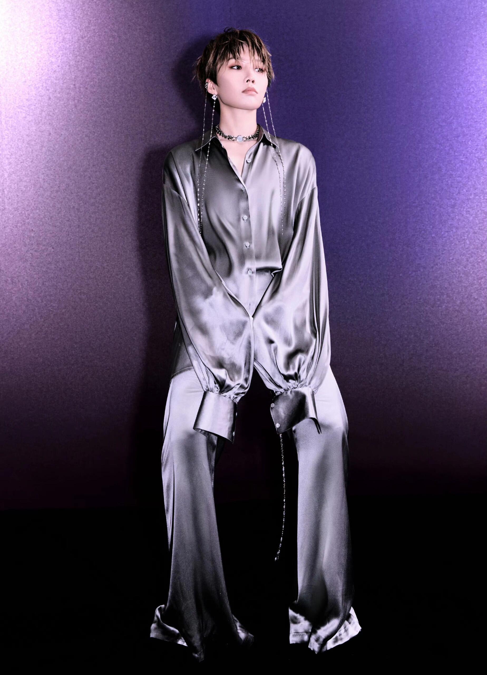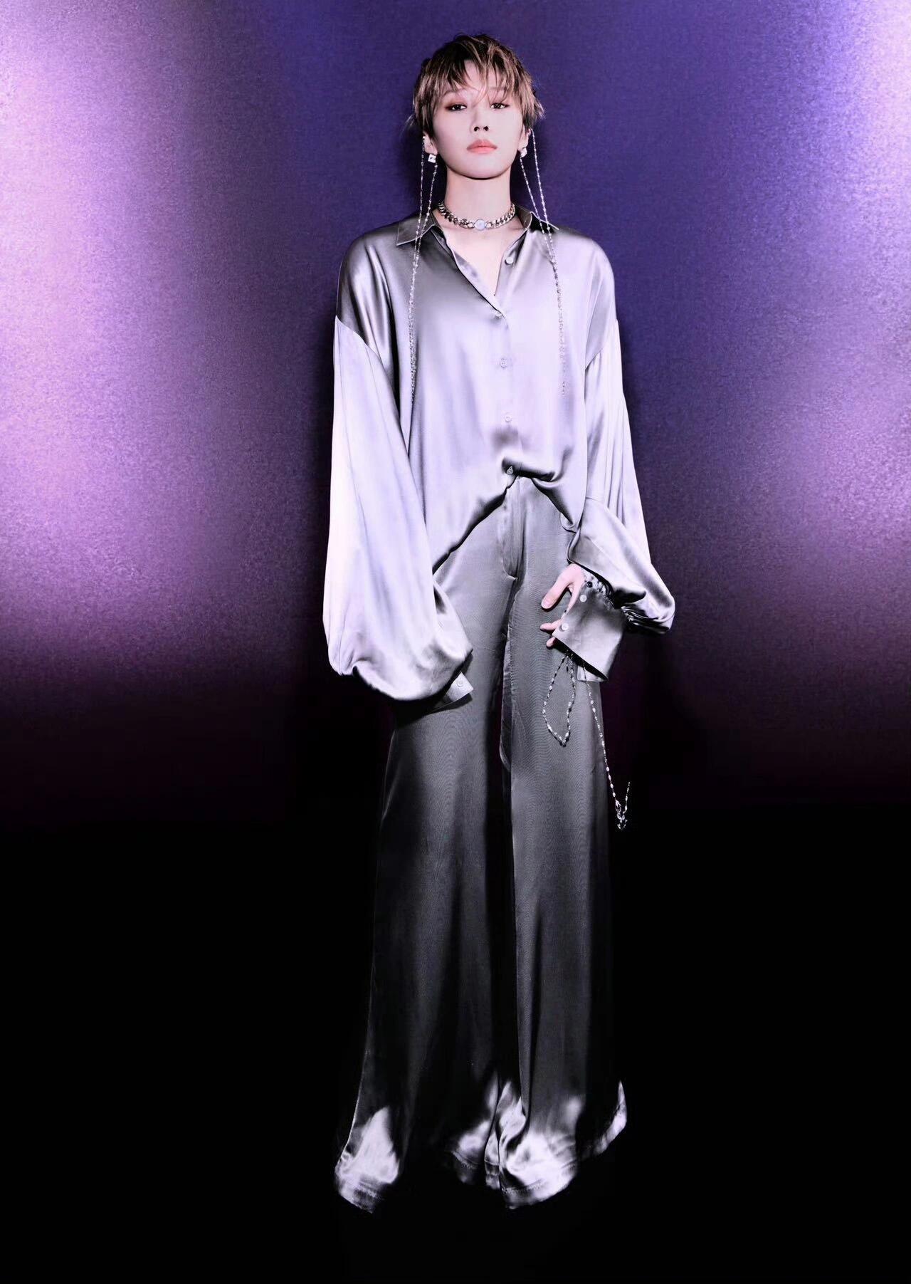 刘雨昕丝滑的缎面套装,精美的长链装饰,简约又不失矜贵格调!