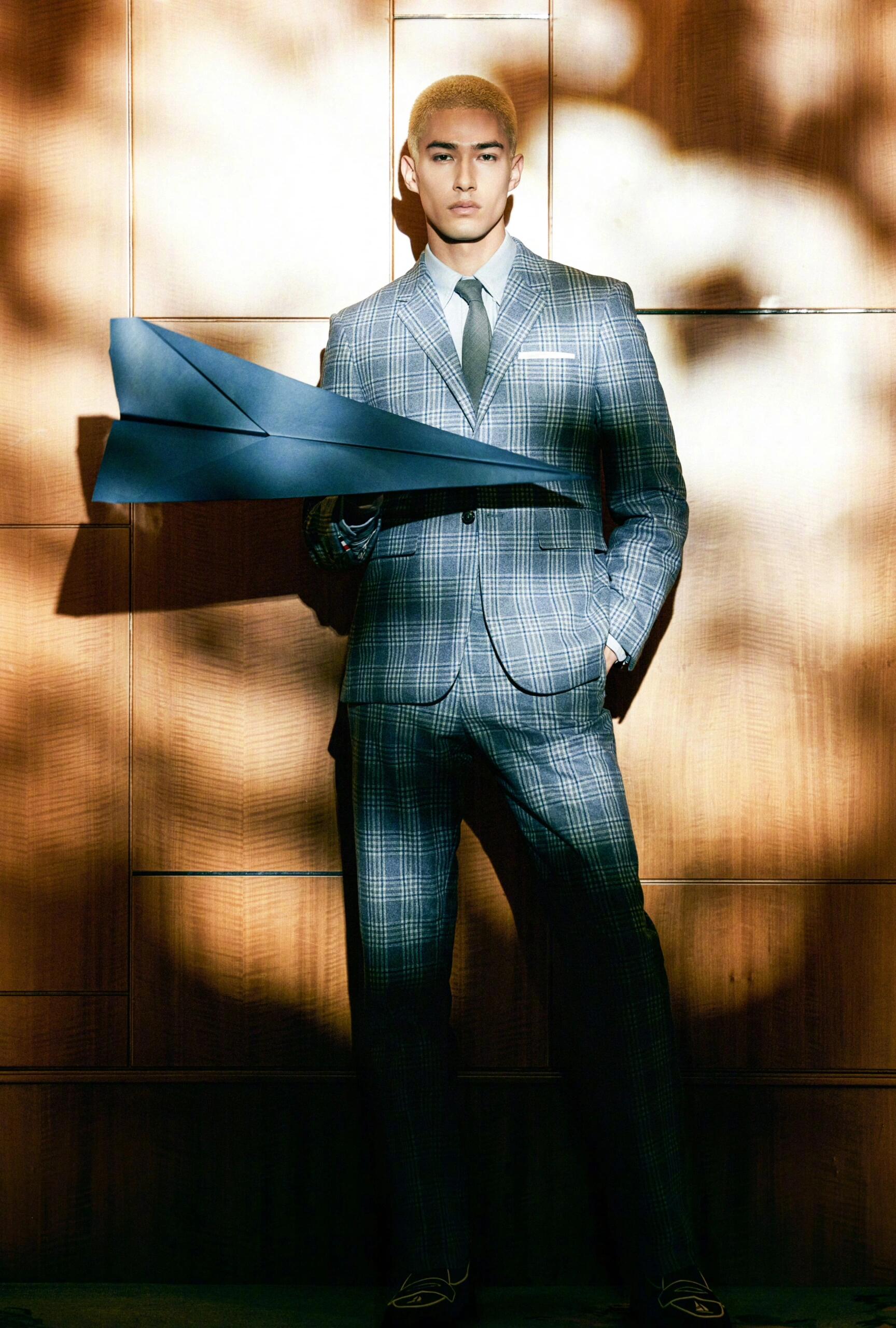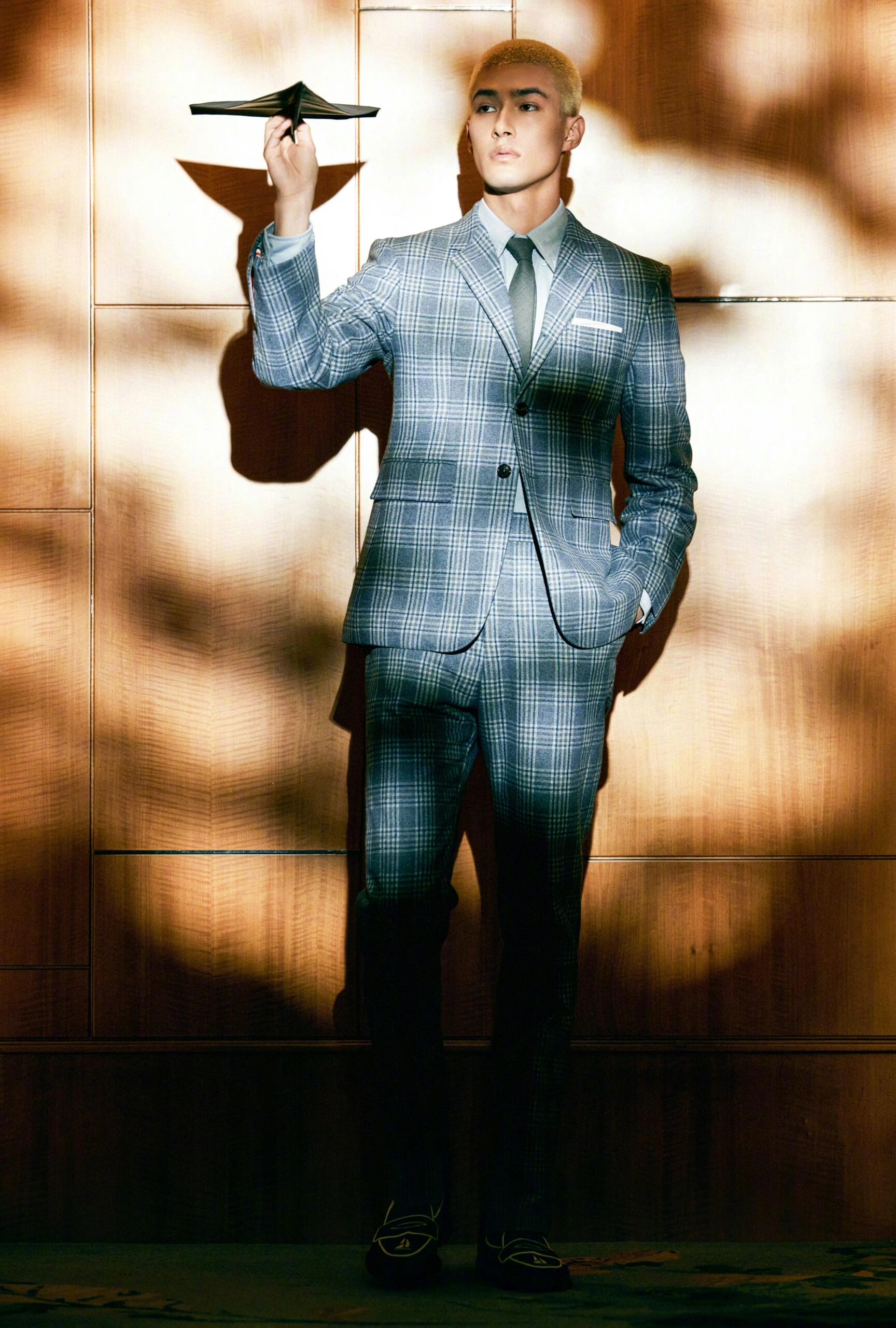 米卡晚宴造型,经典的格纹套装,优雅与随性融合,俊朗有型的绅士格调。