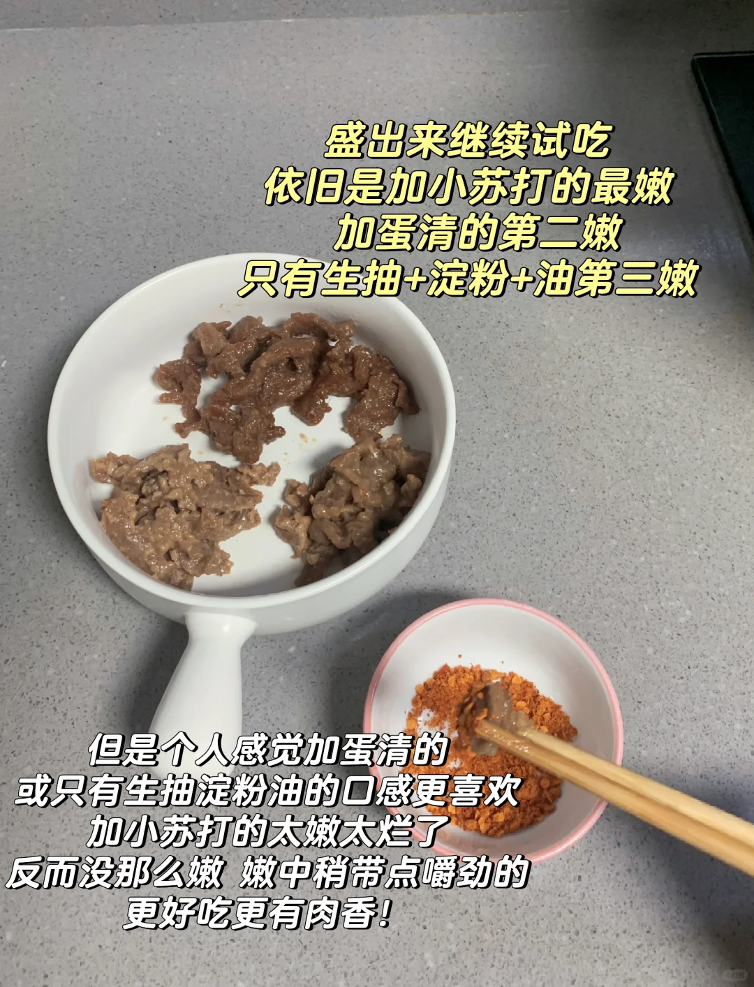🔅相比加小苏打的我更喜欢加蛋清的,或者直接生抽调料淀粉封油的,也很嫩,吃起来更有口感!!!可以腌完放冷藏,第二天直接拿出来做就行~