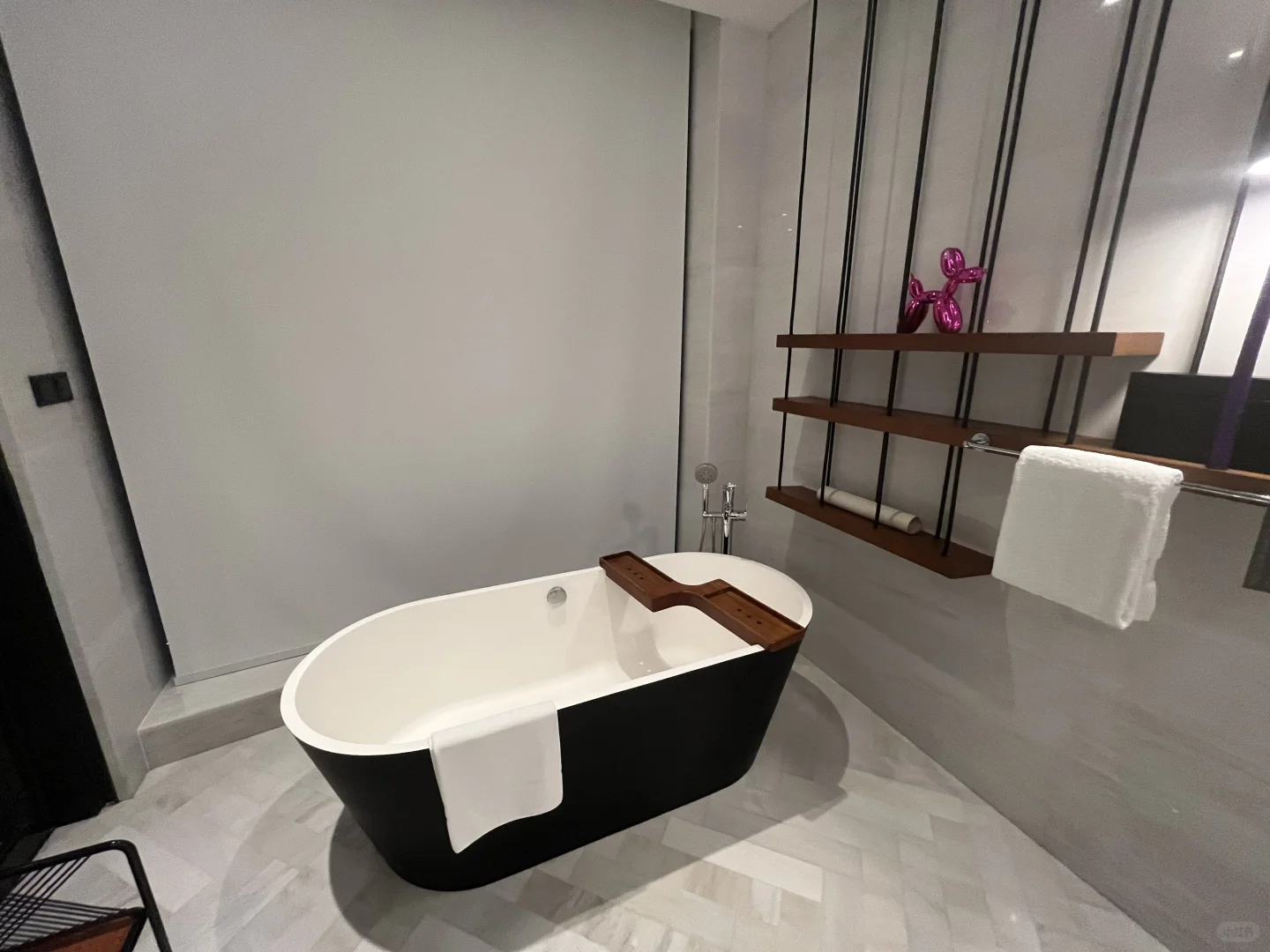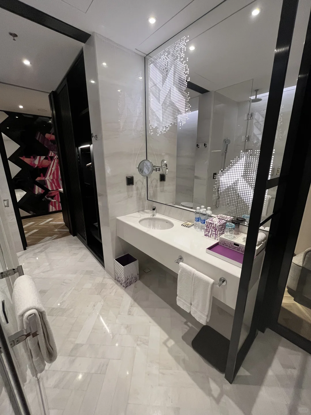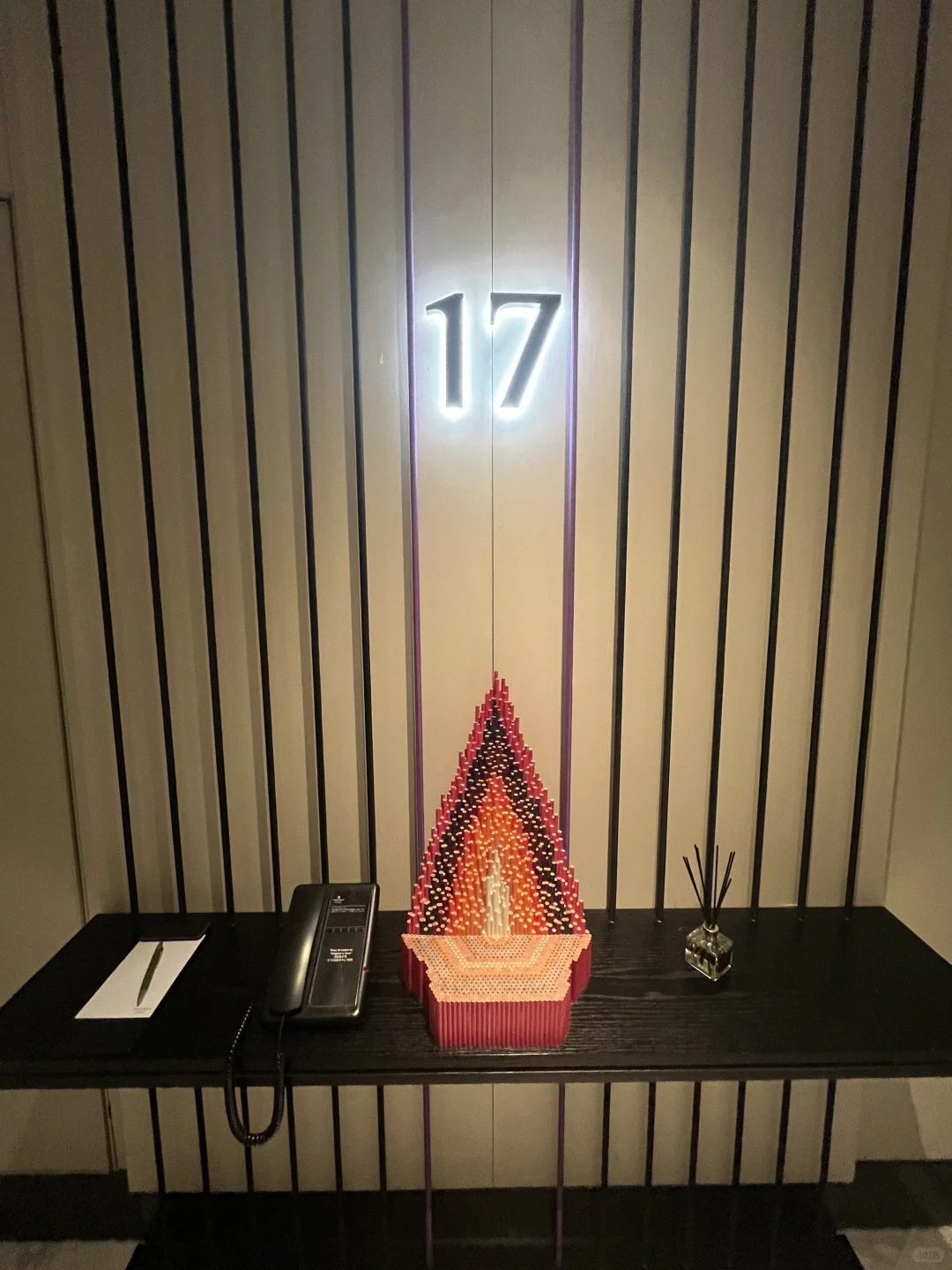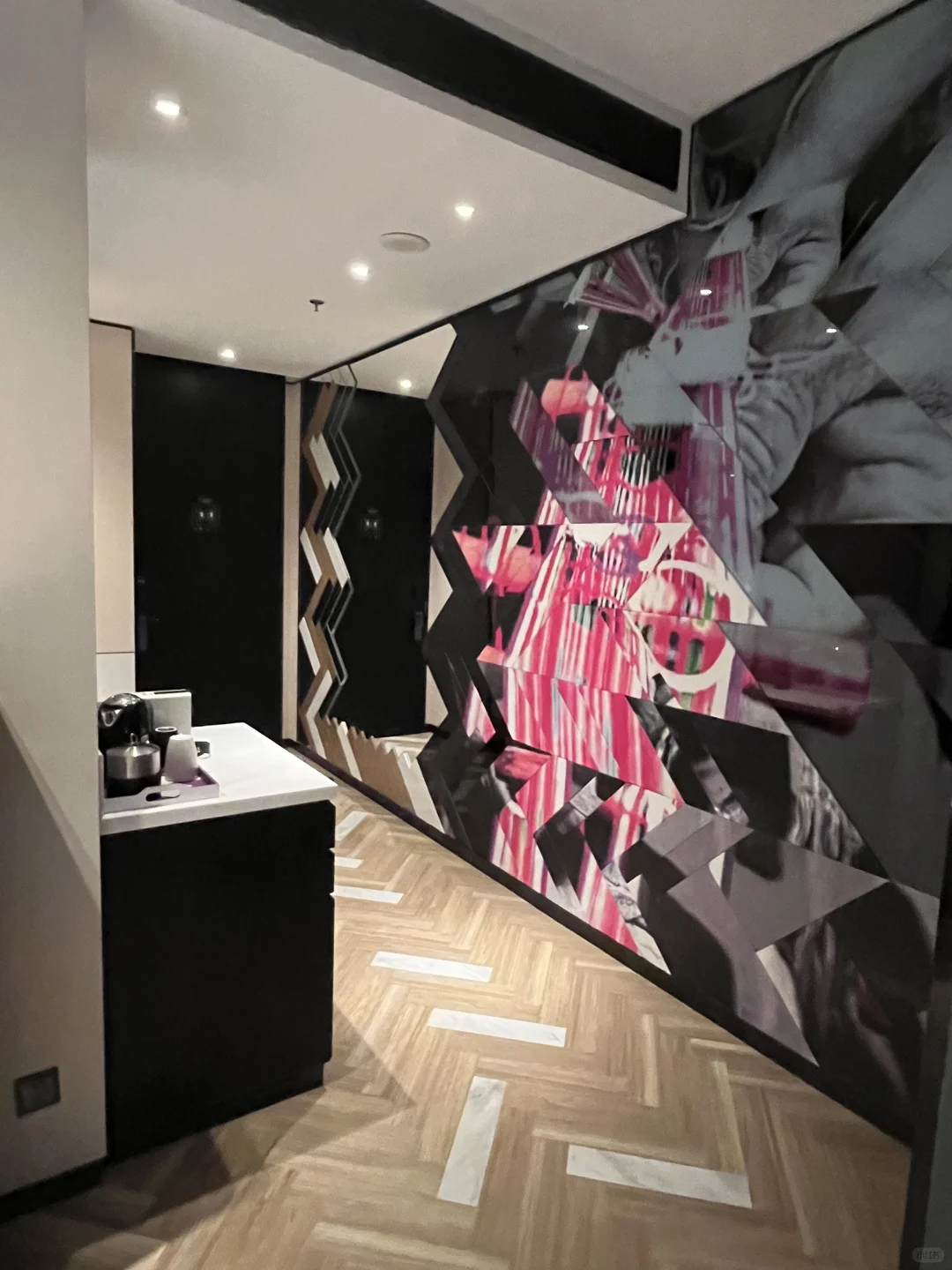升级后的行政房型,面积应该比普通 房型大一点,门口类似CBD所以看出去都是楼,房间看起来比较新,融合了一些本地的壮族元素,用色很大胆,也是这些细节,比较像W吧。