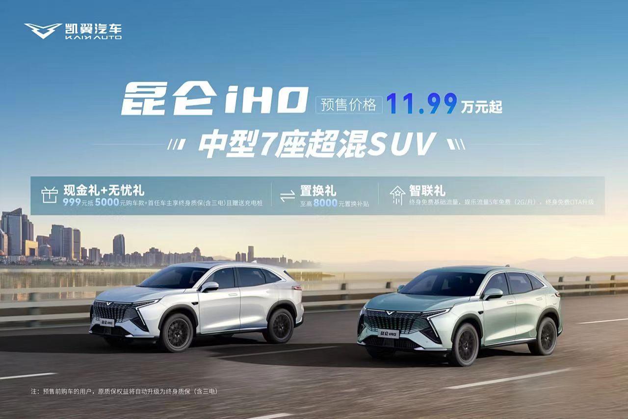 【预售11.99万起 昆仑iHD将8月20日上市 】日前,我们从官方获悉,凯翼昆仑iHD将会在8月20日正式上市,新车是凯翼品牌首款插电式混合动力中型SUV,其基于i-FA平台打造。此前昆仑iHD已经开启预售,共4款车型预售价格区间为11.99万—15.99万。 昆仑iHD的外观和内饰都与燃油版车型保持相同的设计,前脸不规则造型的折线灯带有着非常高的辨识度。车身尺寸方面,新车长宽高分别为4738/1968/1708mm,轴距为2820mm。 动力方面,新车将搭载1.5T发动机+超级混动专用DHT变速箱,搭配P1+P3电机的组合,储能电池为22.48度的磷酸铁锂电池,可提供150km的纯电续航,CLTC综合续航超过1200公里。【来自懂车帝车友圈】