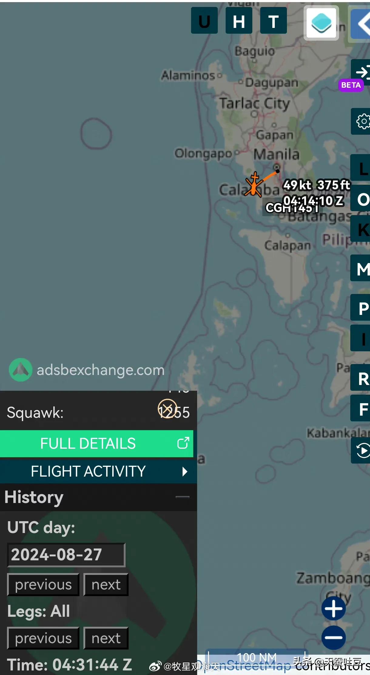 ADSB信号显示,为菲律宾在仙宾礁潟湖非法滞留的BRP Teresa Magbanua号巡逻舰空投补给的H-145直升机于8月27号离开马尼拉,8月30号返回。马尼拉距离仙宾礁直线距离超过700公里,超过了H-145直升机的航程。目前虽不明确菲律宾的补给流程,但是肯定是先飞到巴拉望岛,再从巴拉望岛飞往仙宾礁。 对此: ➤菲律宾升级态势,中国借此向临近的美济礁(甚至永署礁,渚碧礁)派驻战斗机/巡逻机,用于拦截后续可能出现的菲律宾补给飞机。 ➤拖离菲律宾在此非法滞留的船只,并扣押船只,拘留舰上人员; ➤战斗机/巡逻机进驻岛礁后,实现附近空域的定期巡逻。#菲律宾侦察南海# #菲船侵礁# #菲律宾南海撒野# #菲仙宾礁空投#