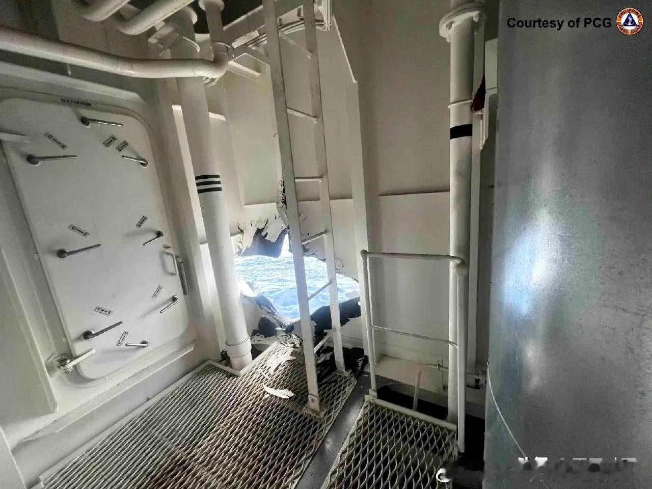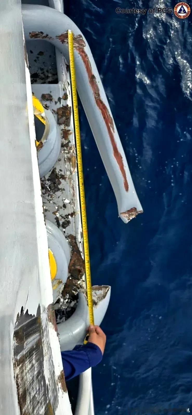 【海警】今天菲律宾海警9701舰在我国仙宾礁进行主动挑衅后,船体因质量问题出现巨大破洞~。#9701海警船# #致敬中国海警!# #菲律宾南海撒野#