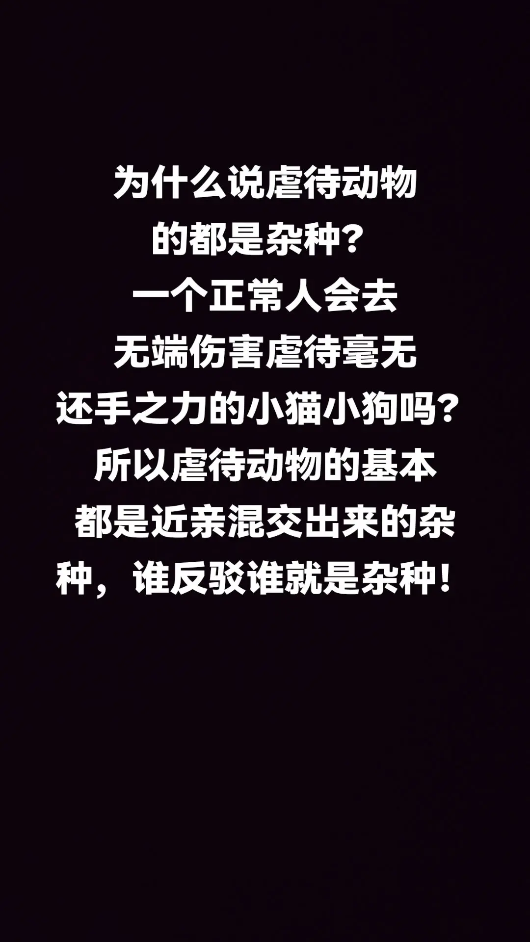 就算天王老子来了,我也还是要说虐待动物的变态都是杂种。