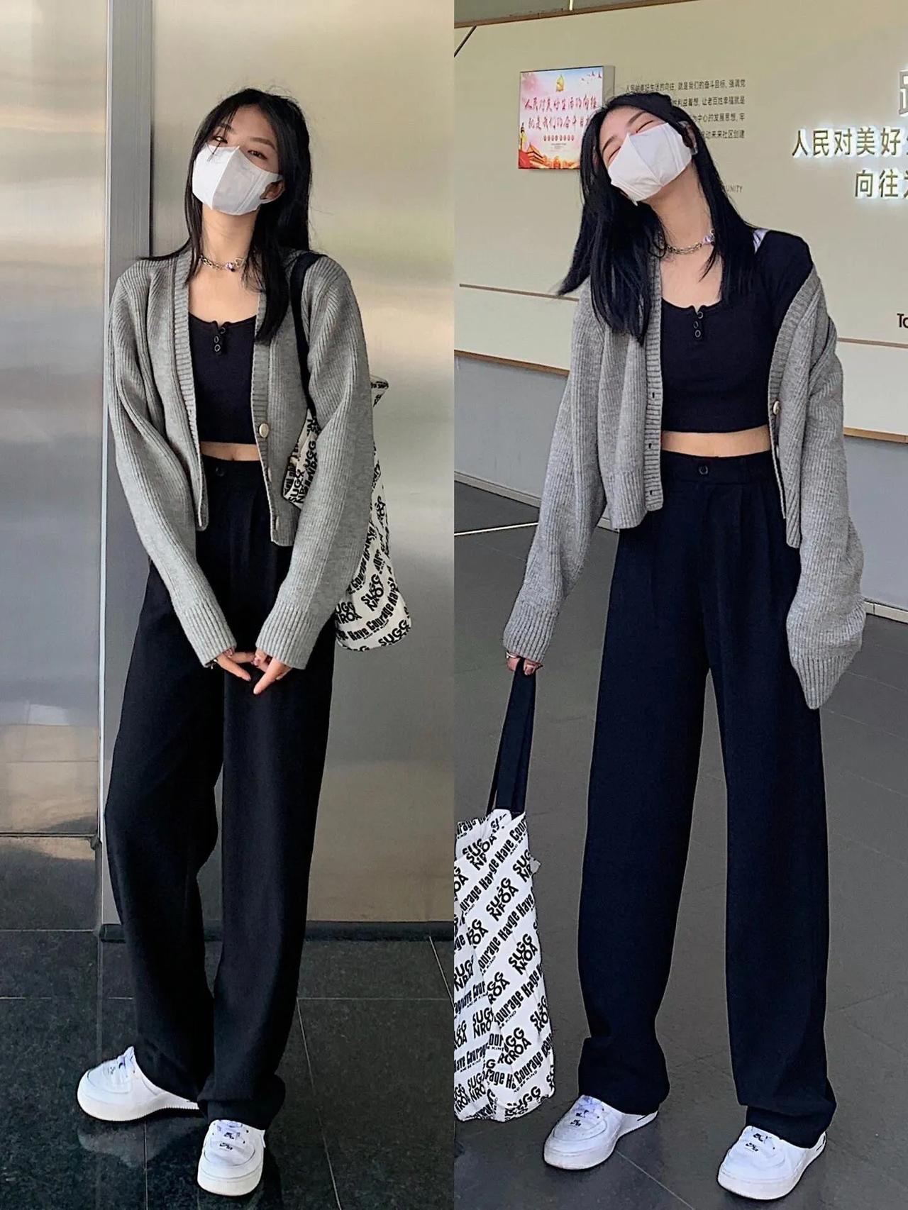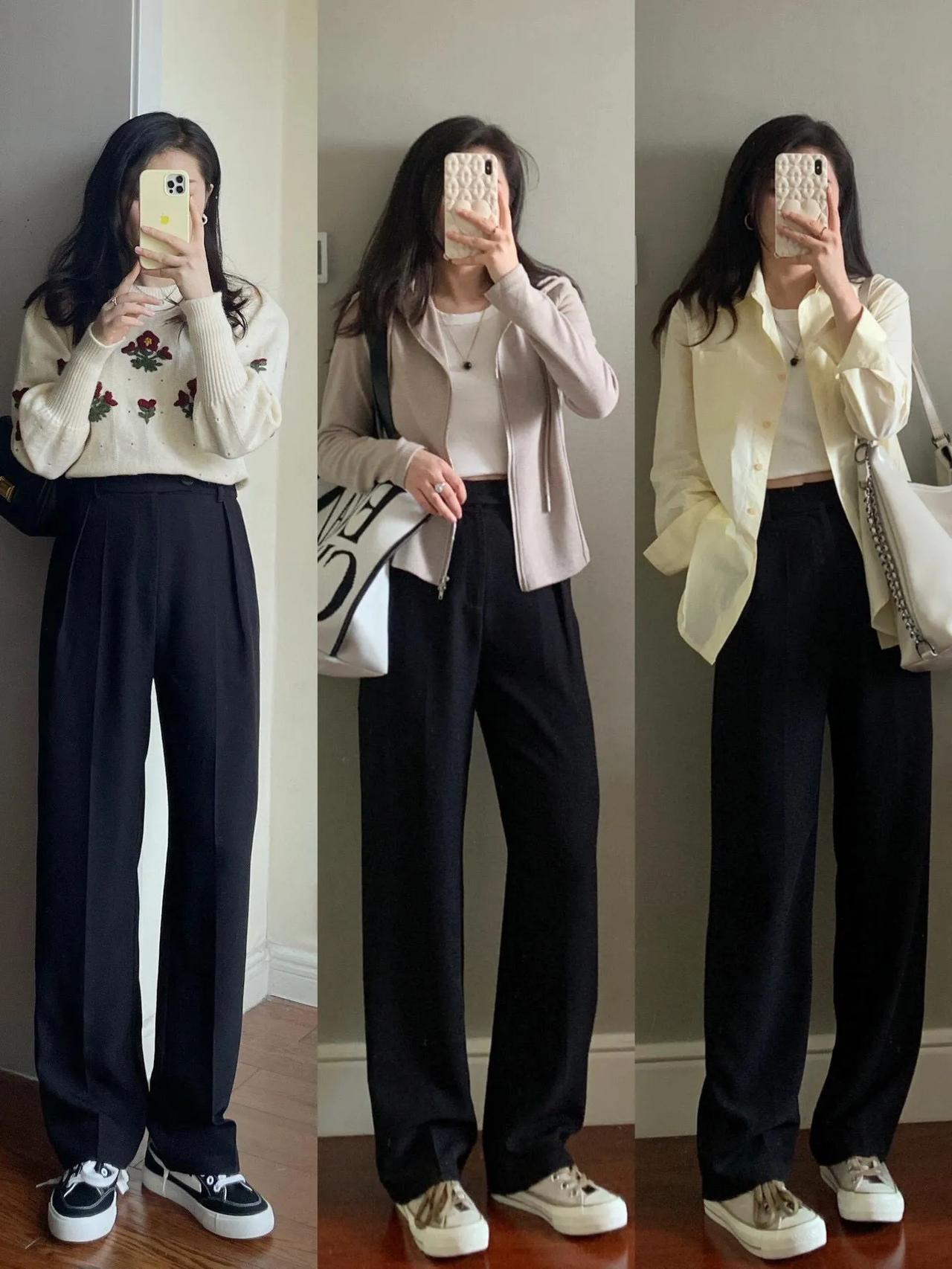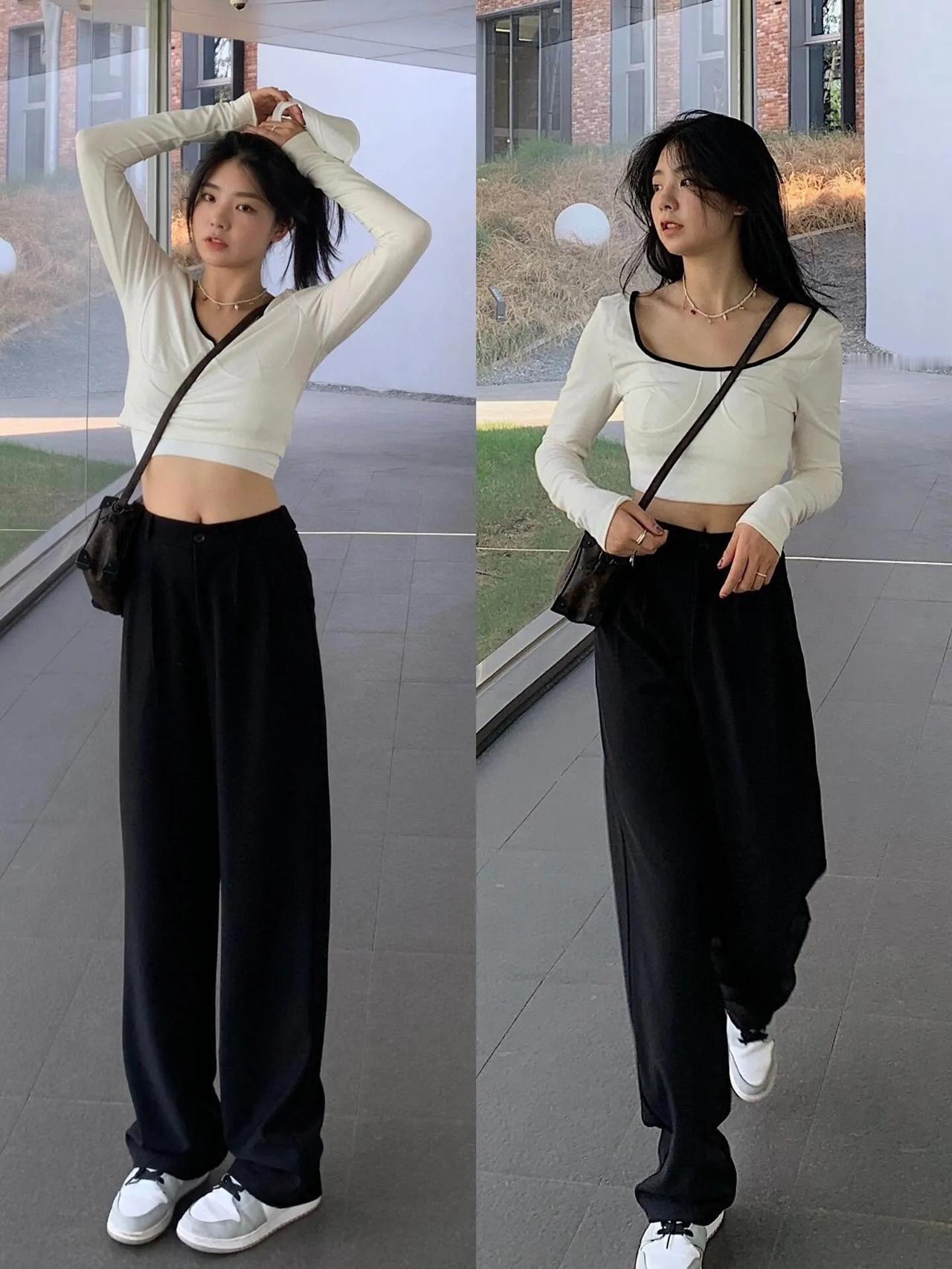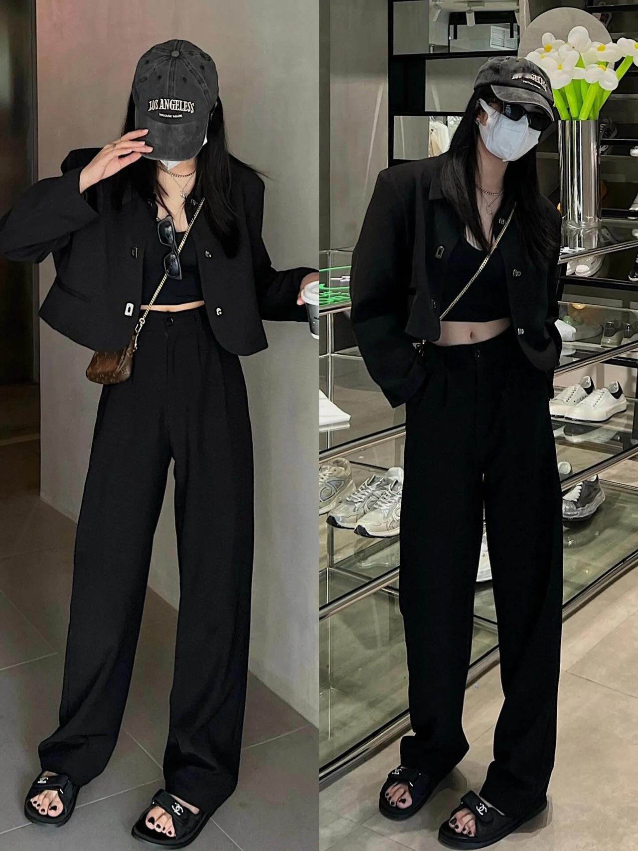 同一条直筒西装裤可以有多少种穿法? 搭配短款上衣,就是辣妹风,打破西裤的刻板印象。 也可叠穿,打的衣服尽量选择短款,或者把衣服别去裤腰里,打造高腰线,轻松显高显瘦,还很好看。 #早秋垂感拖地裤# #西裤# #穿搭推荐女# #风格穿搭分享#