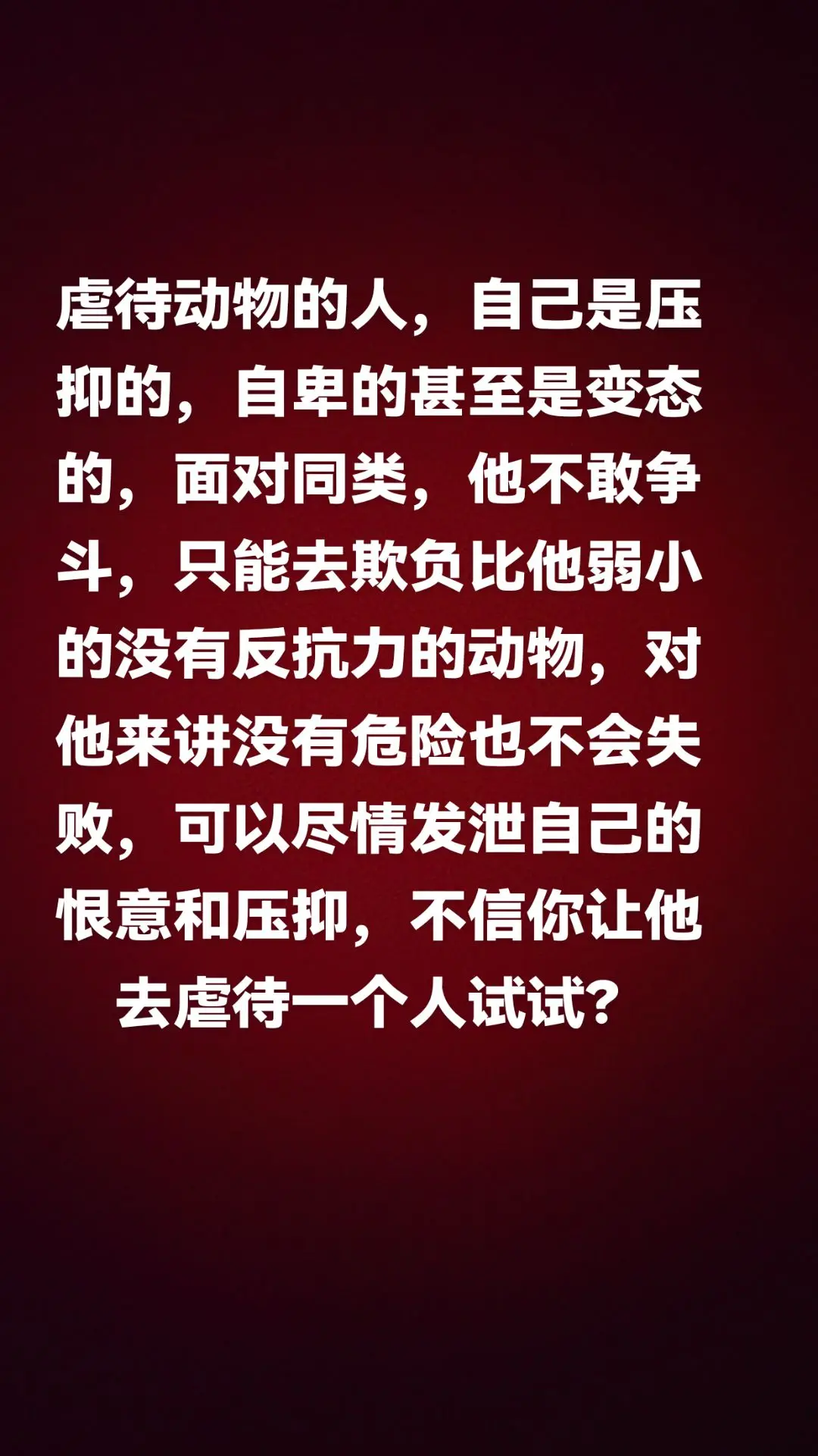 虐待动物的都是赶桨娃儿,也就是俗称的怪胎,你认可不?