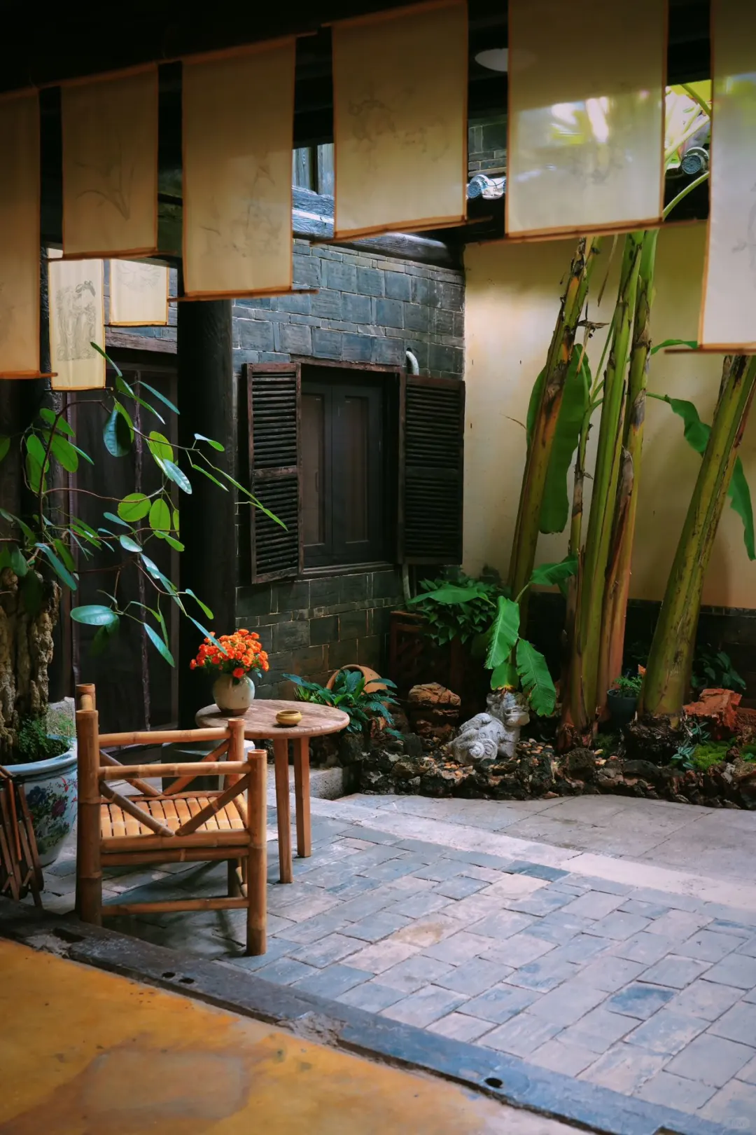 这个季节坐在院落中、坐在芭蕉树下,吹吹风、喝喝茶、聊聊天,享受着属于建水的慢时光,也是属于自己的静谧时光。