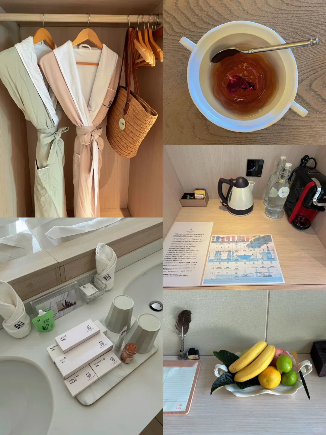 房间有新风交互系统、地暖和中央空调,保证了不管什么季节入住都很舒适,另外还配备了防紫外线的玻璃,从意大利进口瓷砖、德国汉斯格雅洁具、美国思涟品牌床垫等,足以看得出酒店方的用心程度,在我们入住的时候,还会让我们选择喜欢的洗护用品,以及第二天早上的早餐。
