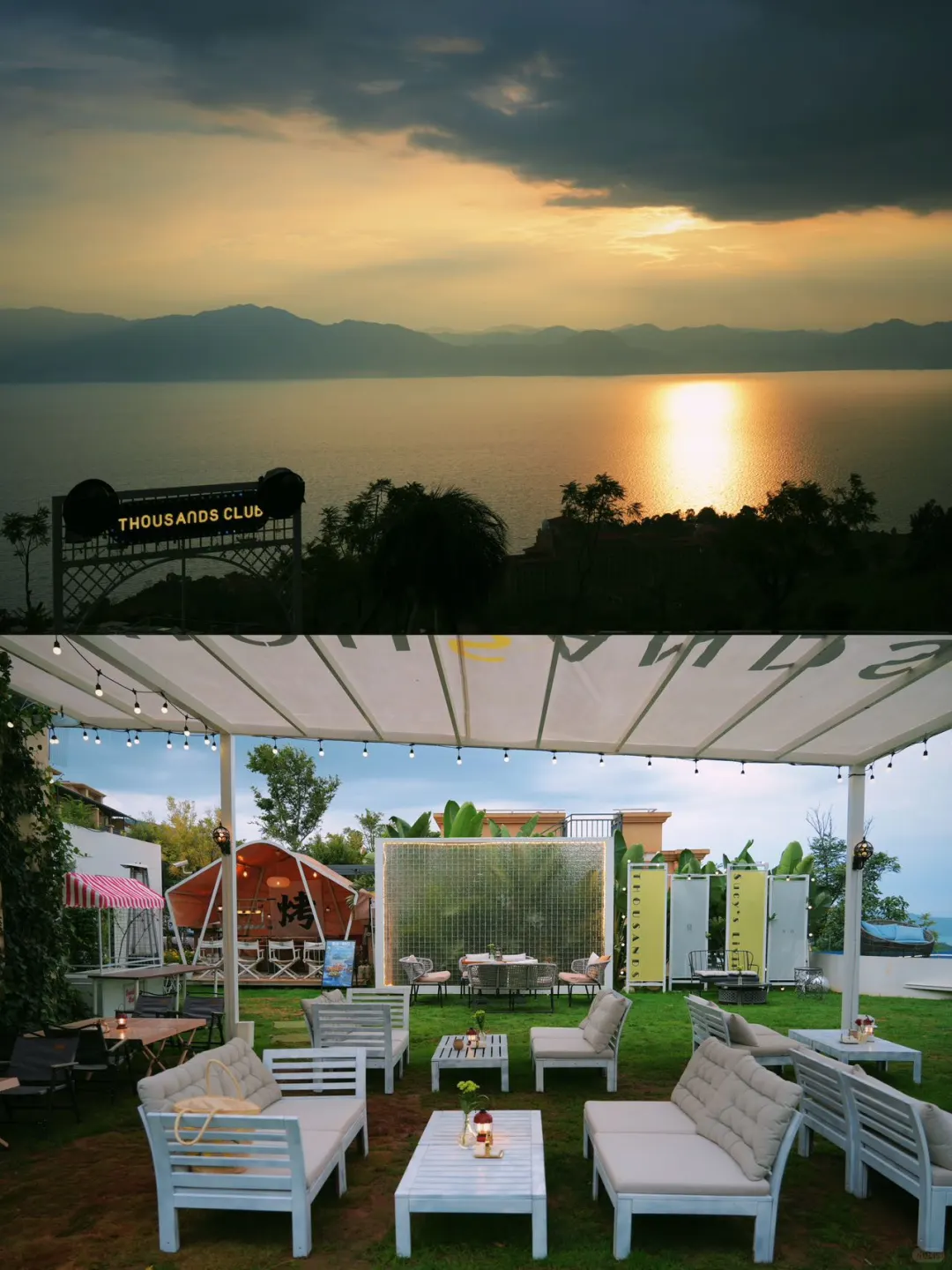 ⛺️公区是一栋独栋别墅🏠➕大大的草坪,正对抚仙湖,最享受的就是下午坐在这里,吹吹山上的风,看着湖景,喝个下午茶(入住客人是赠送下午茶的,有咸式和甜式可以二选一)