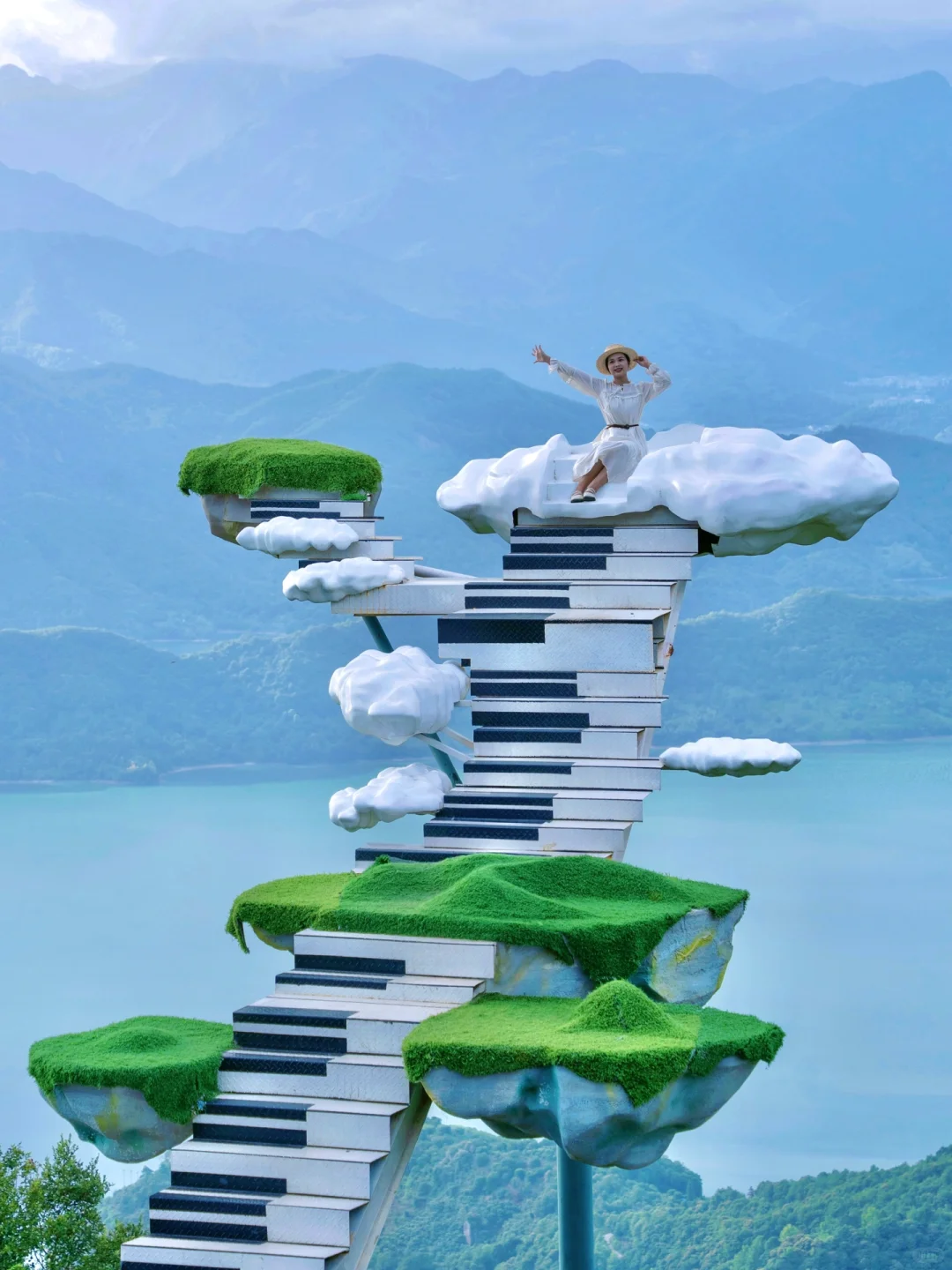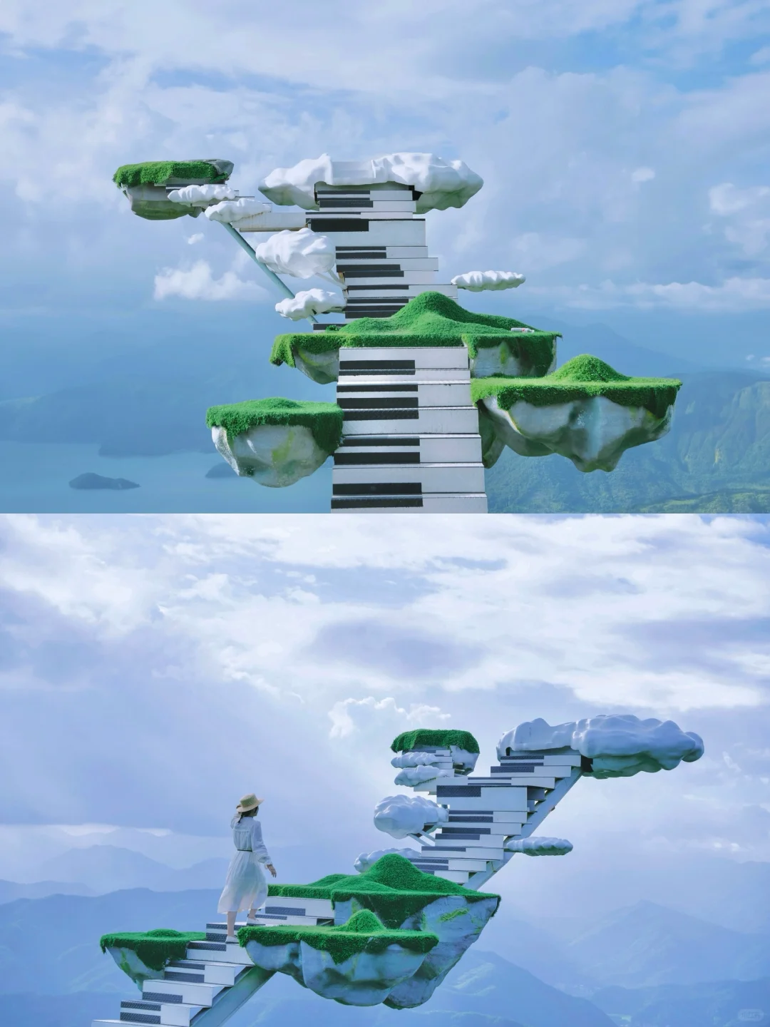 📍悬浮岛✔️漂浮在云端的岛屿&通往天空的钢琴云梯相连而成💯超级出片