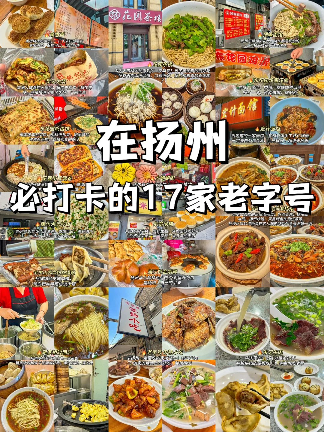 扬州好吃的真的太多了,近期来扬州旅游不知道如何吃,看这篇就够了,超全!! - 1️⃣聚香斋 2️⃣樊记火烧店 3️⃣东花园鸡蛋饼 4️⃣阿三嫂·民间淮扬菜 5️⃣大麒麟阁 6️⃣荆楚米糕 7️⃣渡江桥金刚蹄 8️⃣蒋家桥饺面店 9️⃣老字号 苏扬小吃 1️⃣0️⃣花园茶楼 1️⃣1️⃣朱记牛肉 1️⃣2️⃣玉器街豆腐卷 1️⃣3️⃣康乐大头炒饭 1️⃣4️⃣老虎山鸭血粉丝锅贴 1️⃣5️⃣顶峰面馆 1️⃣6️⃣东花园鸡蛋汉堡 1️⃣7️⃣宏记面馆 -