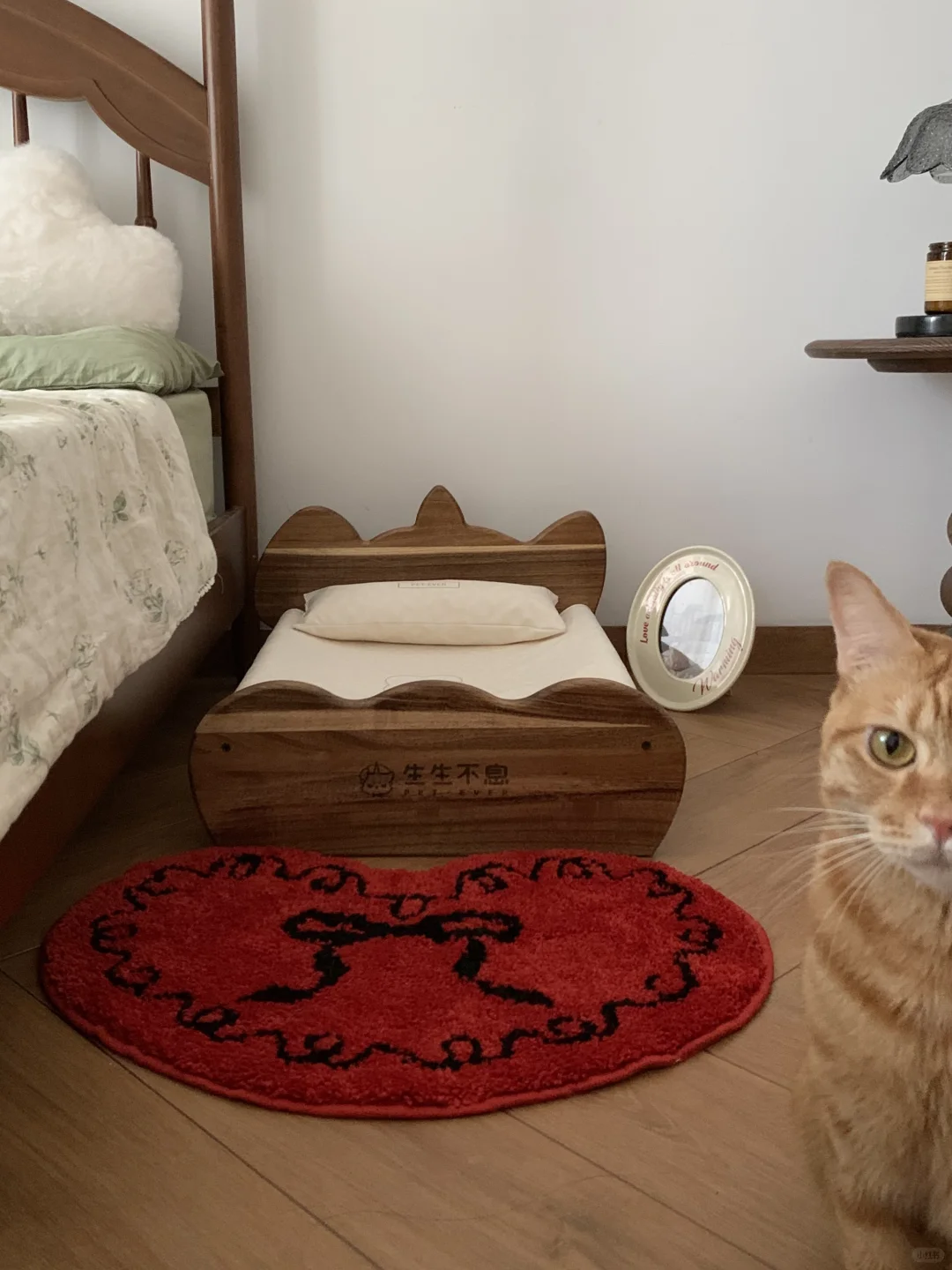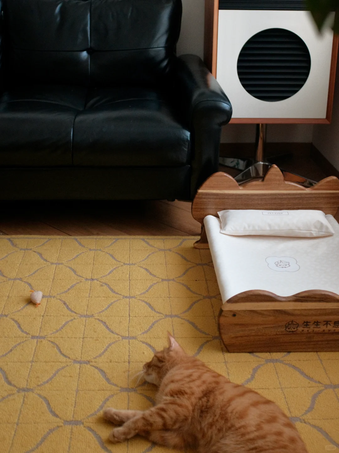 搭配上软垫 放上小猫爱的玩具小鼠