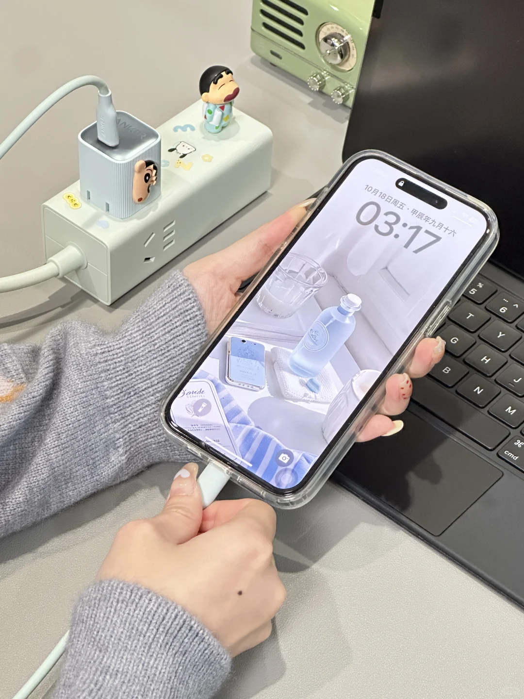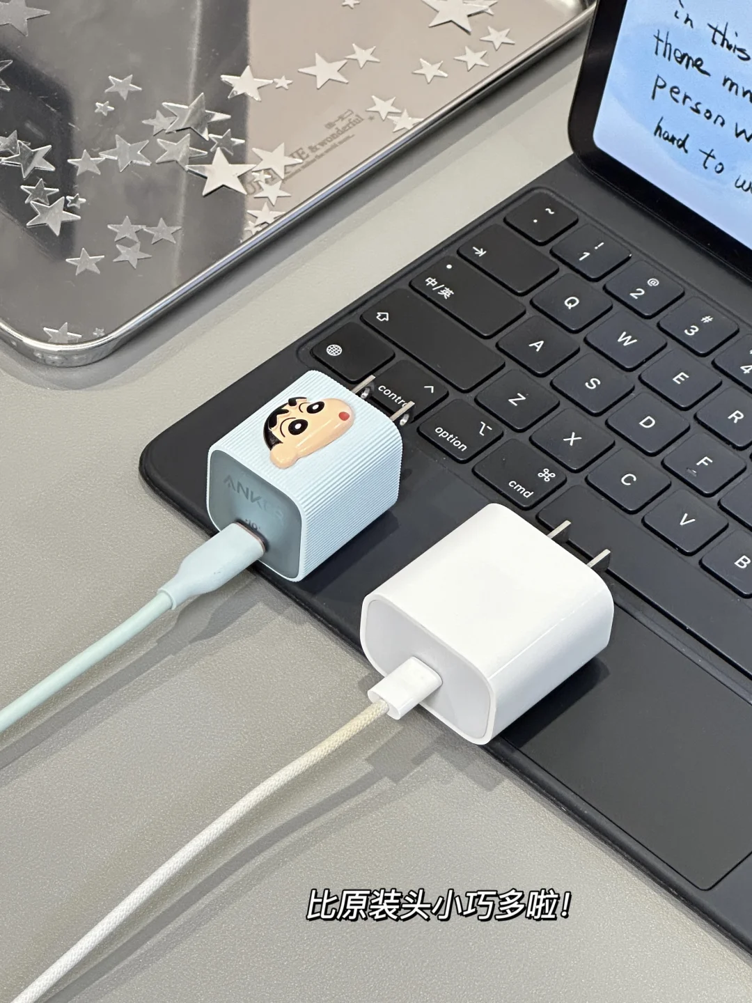 现在充电器都这么卷了嘛? 新入的安克安心充16真的好用死了! 好用就算了,颜值也是深得我心🩵 清清爽爽的薄荷绿泰好看啦 这么快的充电速度是要卷si谁啊 20分钟多就充⚡接近一半了~ 重点是充这么快还不发烫 智能温控技术尊嘟牛 再也不怕过夜充啦 折叠的插脚设计 小小的一个带出门也好方便 比苹果原装充电头速度快体积还小很多 自己diy了蜡笔小新上去!尊嘟很喜欢~