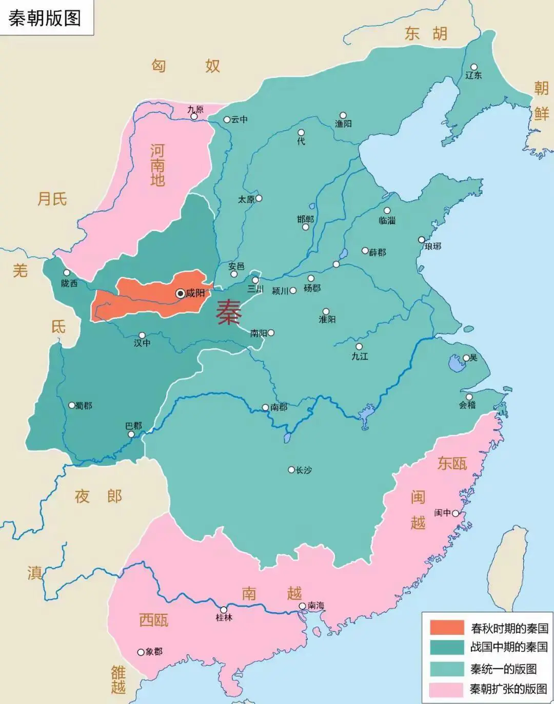 不同时期秦国(朝)领土变化。