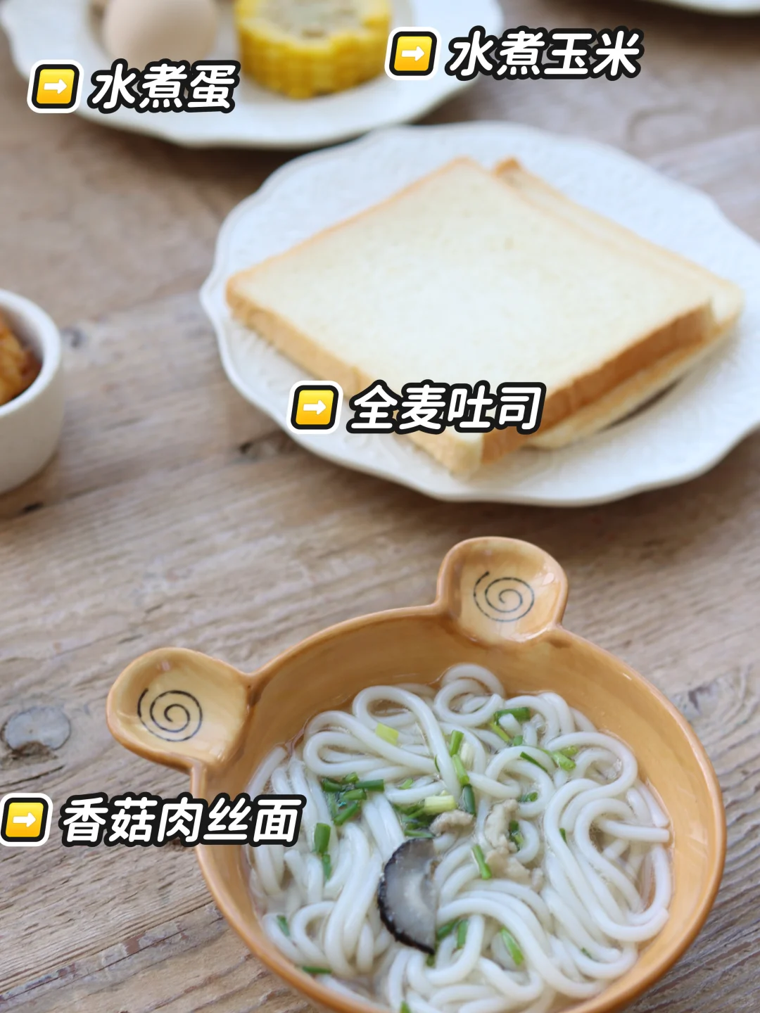 🍳早餐:玉米、水煮蛋、全麦吐司