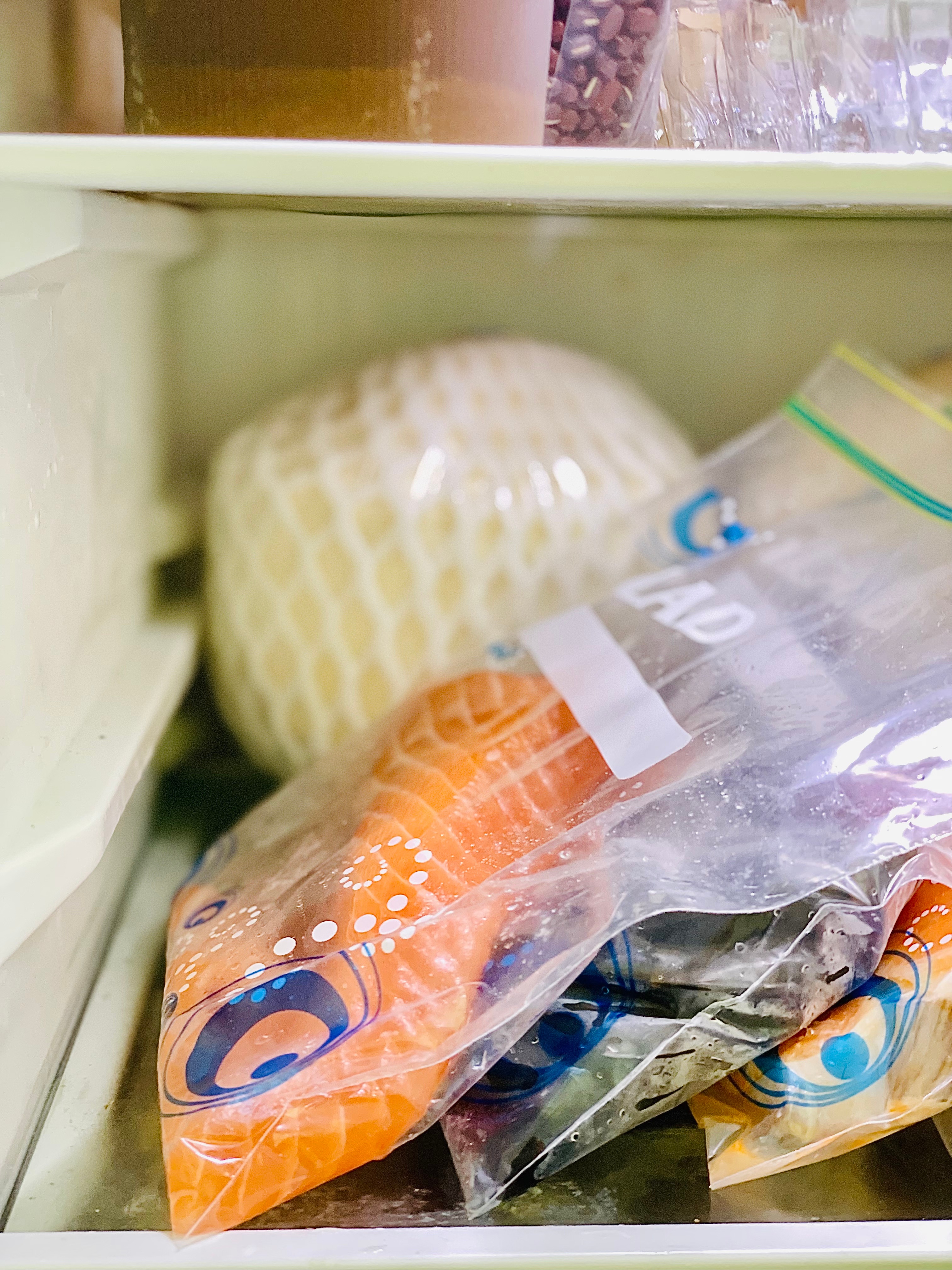 食材清洗后用密封袋分装按照一餐食用的量分装好,佳能密封袋采用食品级PE材质,不添加塑化剂,可以直接接触食物,用起来更放心