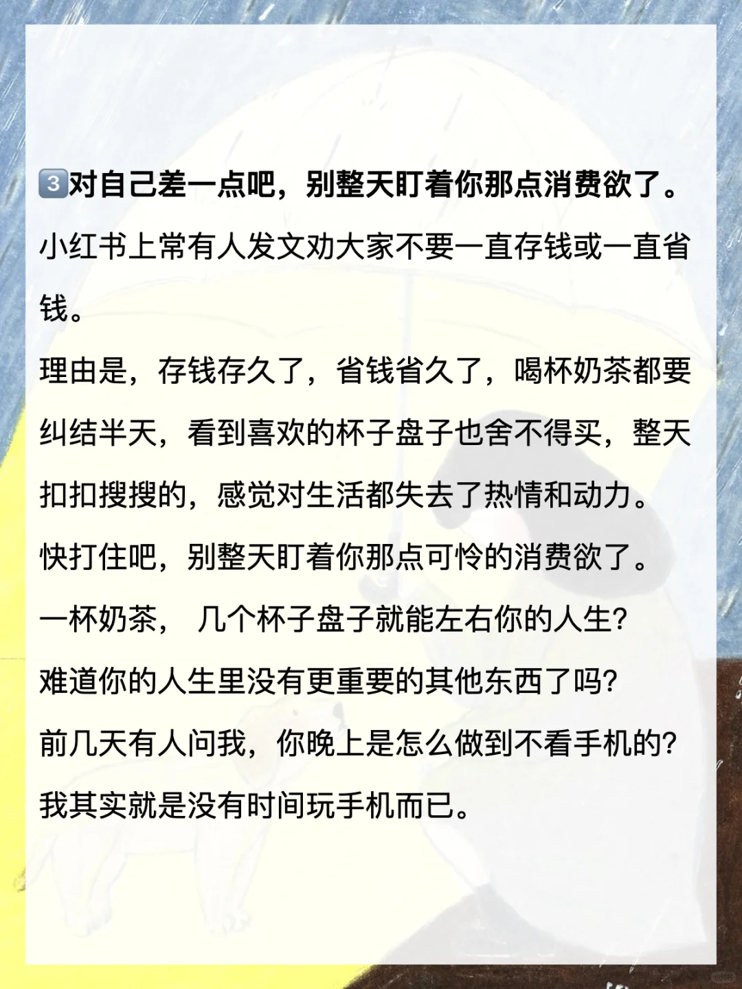 3️⃣对自己差一点吧,别整天盯着你那点消费欲了。