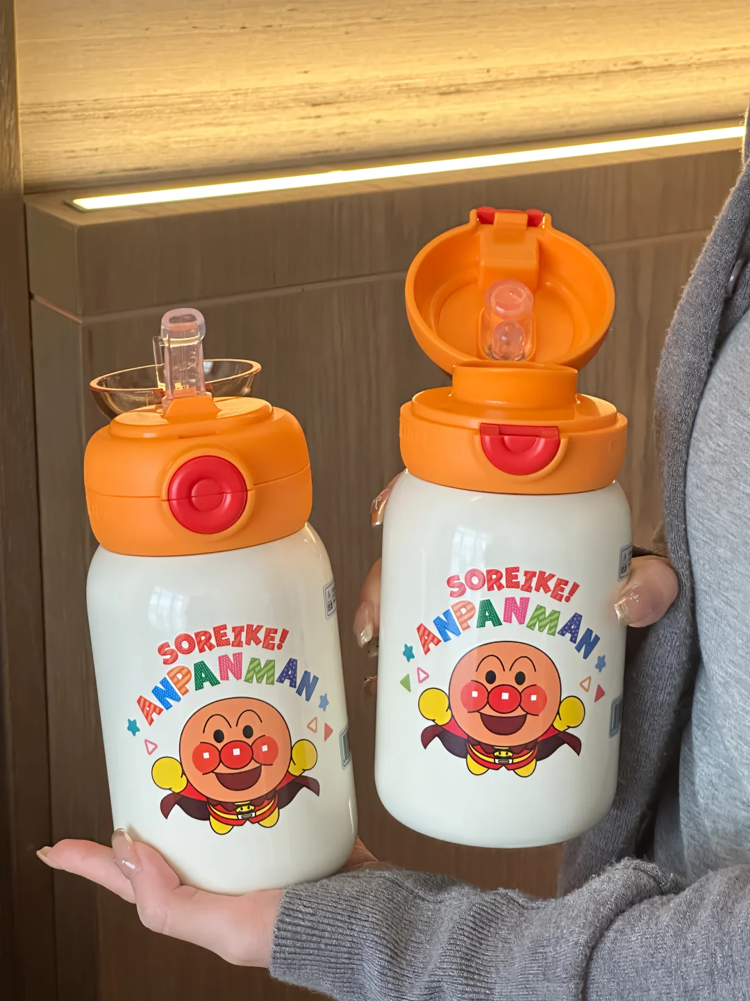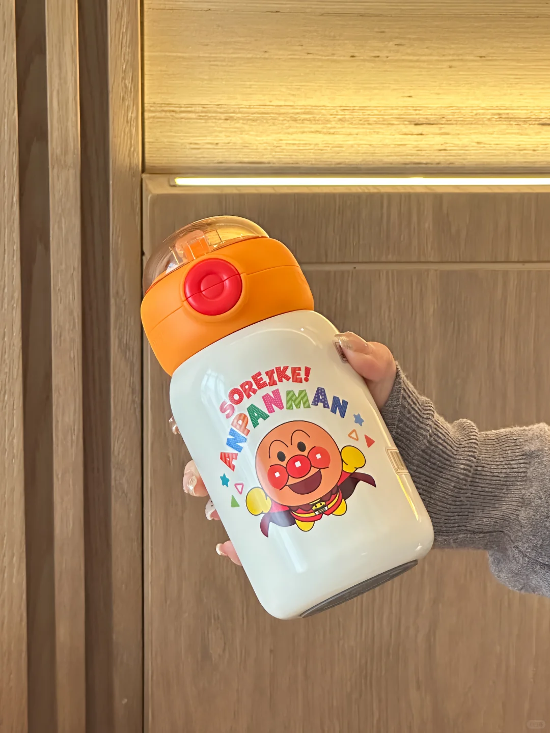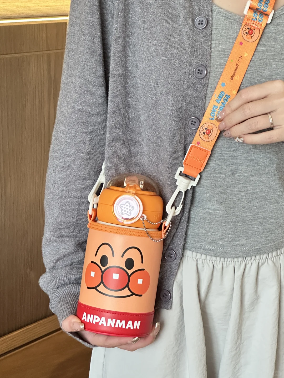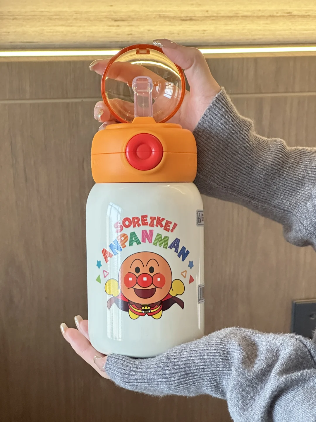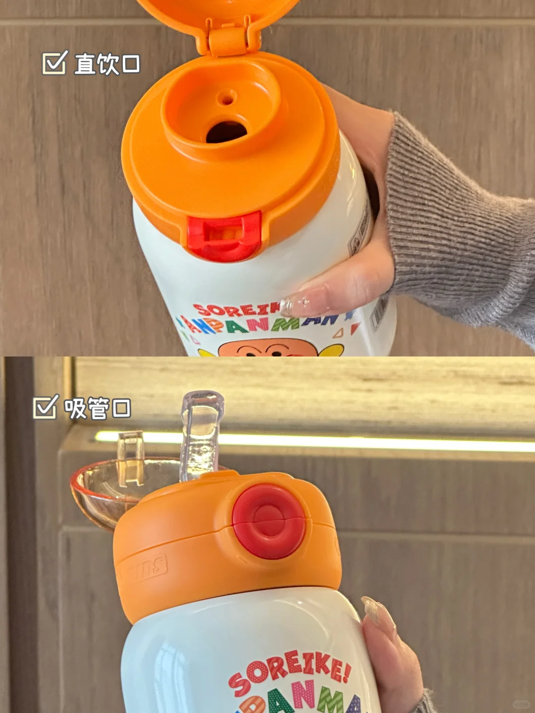胖嘟嘟大圆脸的面包超人也泰可爱啦 是小时候超爱看的动画📺 现在长大了也依旧治愈着我 吸管口➕直饮口双饮✅ 550ml容量不大不小刚刚好 内胆是316L不锈钢材质 用着很安心😌而且保温效果嘎嘎好🔥 还配了杯套和背带 背出门敲可爱耶✌️ 买回来侄子一直抢着要 于是乎给他也买了一个哈哈哈 也是和小孩哥用上同款了~
