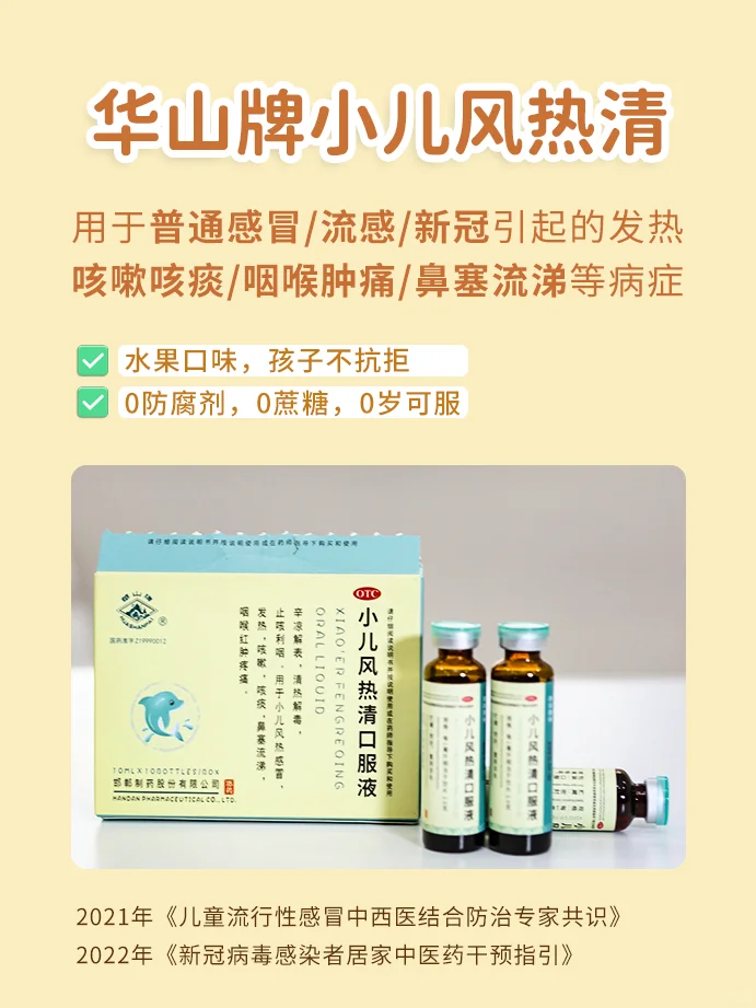 【华山牌小儿风热清】能够治疗发热,鼻塞流涕,嗓子疼,咳嗽咳痰等症状,不管是普通感冒还是流感引起的,都有很好的效果。味道微甜,宝宝不抗拒。还不含有防腐剂,家长更放心。✌🏻