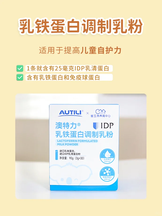 【澳特力乳铁蛋白】营养丰富O添加,每条含IDP乳清蛋白25毫克,每天1袋,让宝宝吃出好体质。
