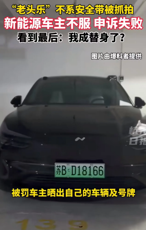 照片中,"老头乐"的驾驶员未系安全带,被摄像头拍到了。然而,这张罚单却莫名其妙地开到了李先生的头上。