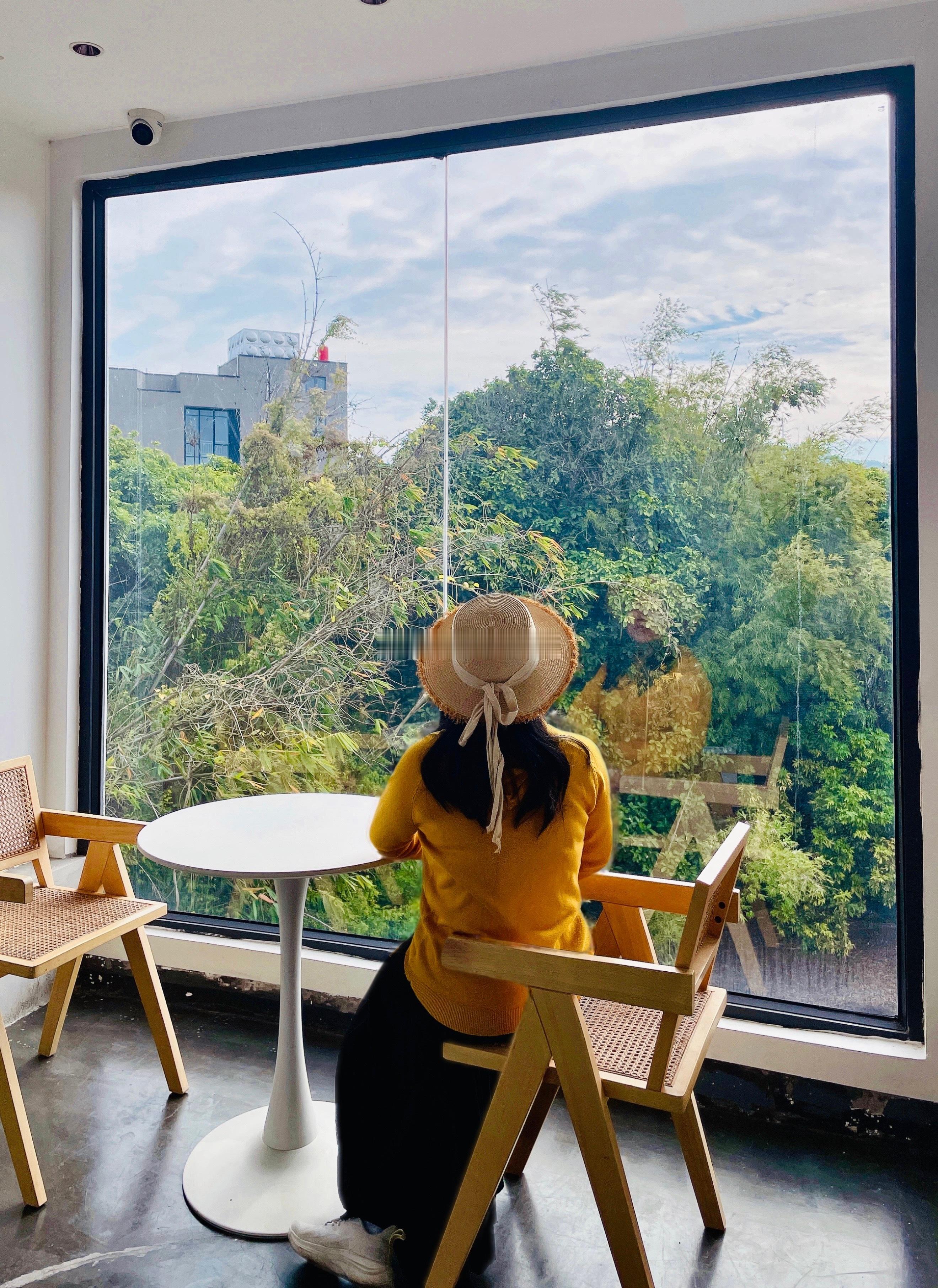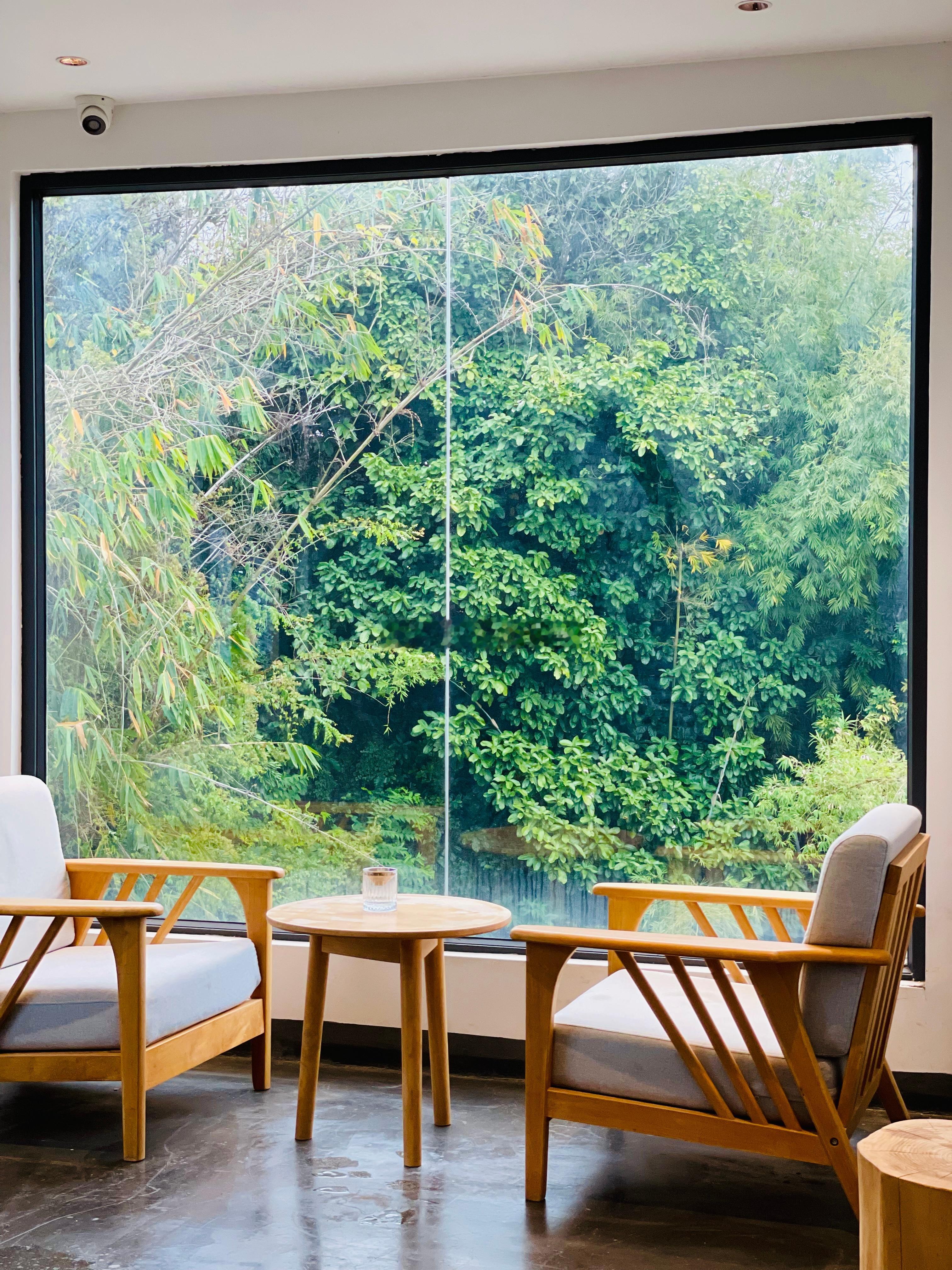 🪟落地玻璃窗对住一排树景,🌲绿油油一片的好养眼~