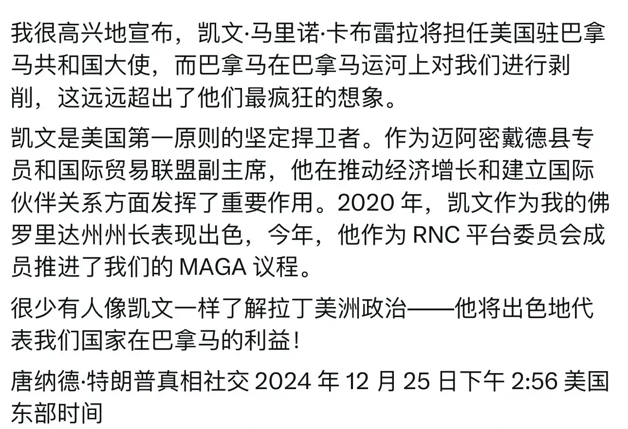 不过这也算是论功行赏,这个凯文在今年大选中出了大力,未来四年巴拿马运河肯定在特朗普计划内,所以巴拿马大使的位置还挺重要的。