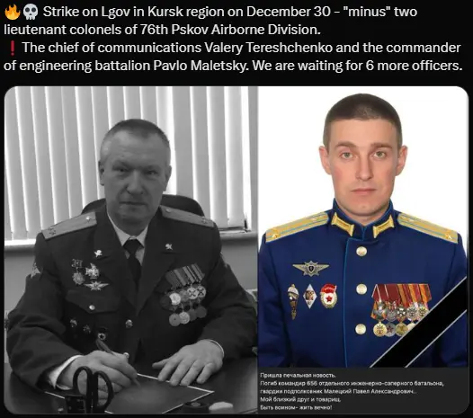 俄罗斯两名中校在库尔斯克被乌军消灭,据说还有六名军官被同时一锅端了,只是尚未有具体的身份信息。