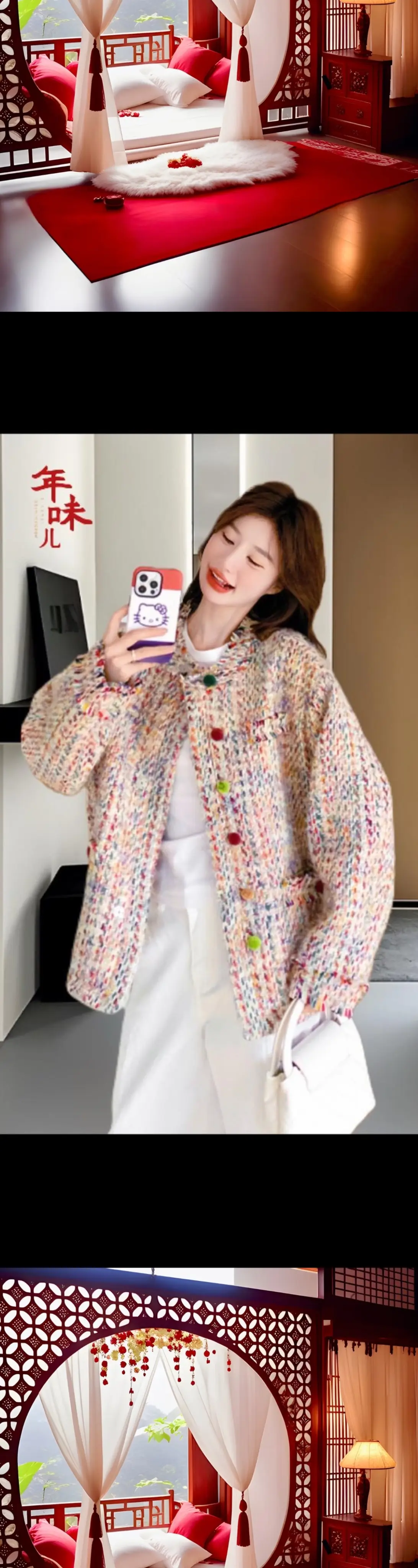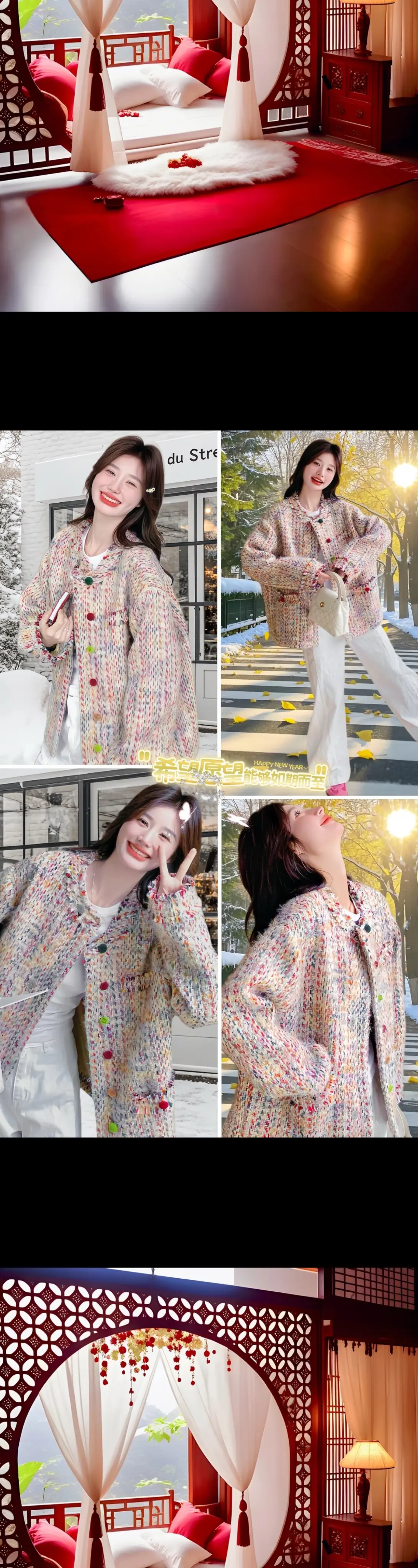 新年穿这件也太美了吧。这款彩色小香风外套,专为追求精致的你而来。经典小香风遇上多彩色调,碰撞出别样时尚火花。韩系氛围感拉满,名媛千金风尽显。
