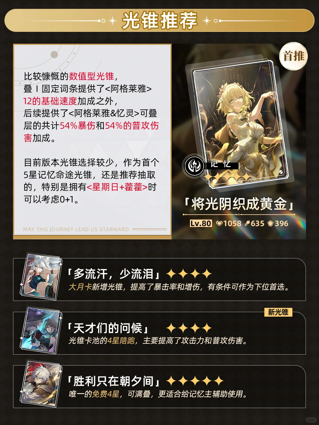 星铁V3.0丨首位记忆输出『阿格莱雅』抽取建议